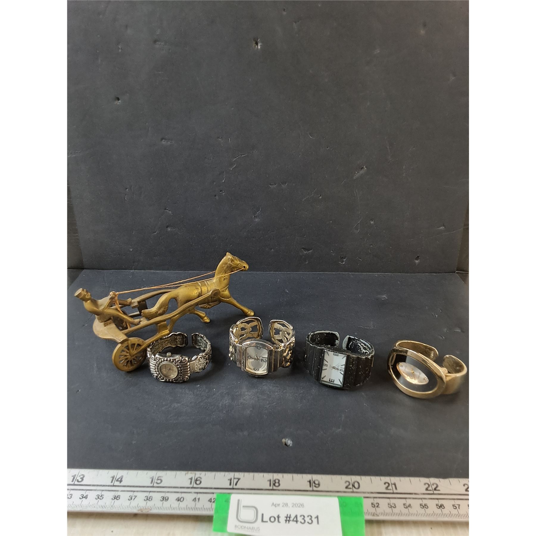 Lot 4331 Brass Man and Horse Ornament & (4) Assorted Women's Watches