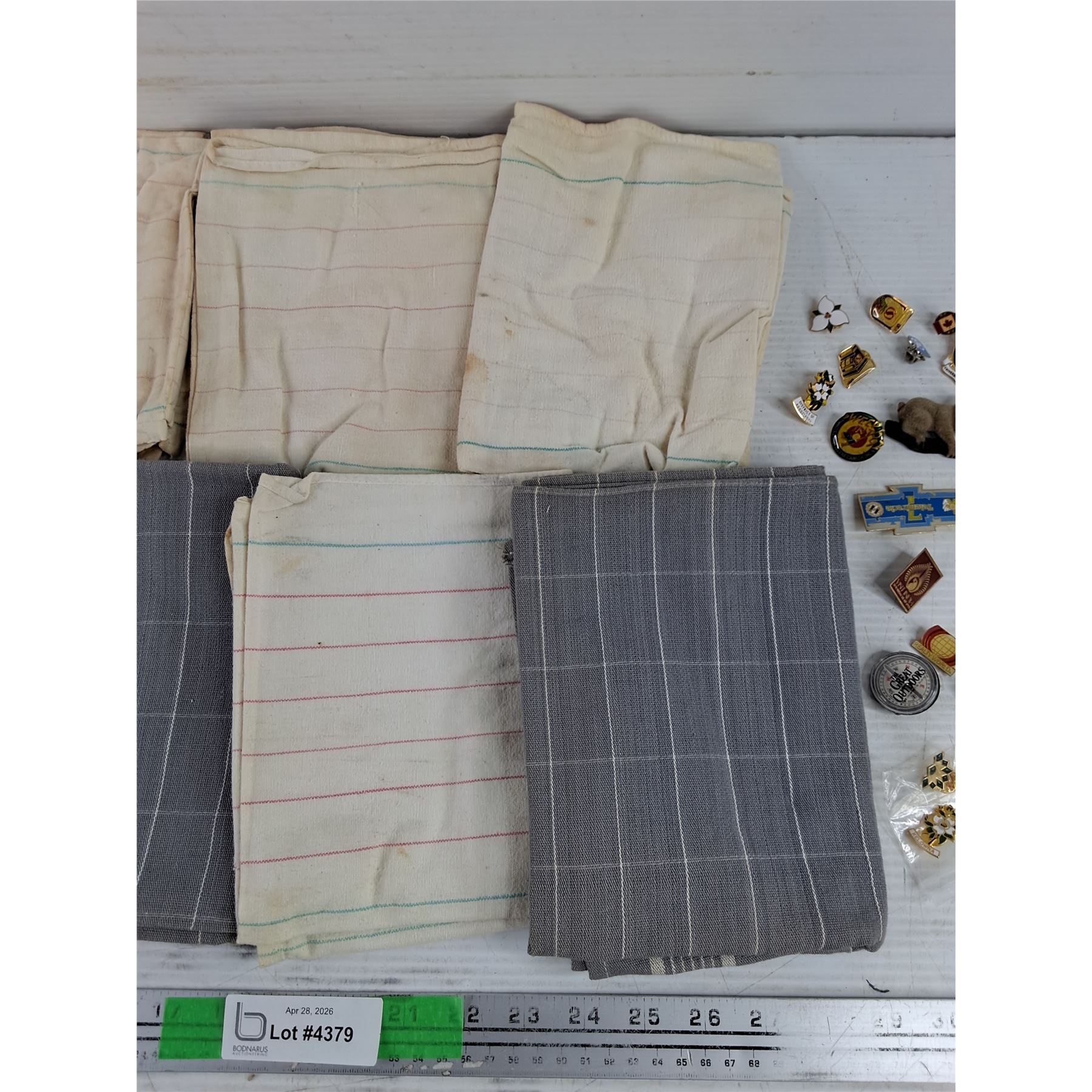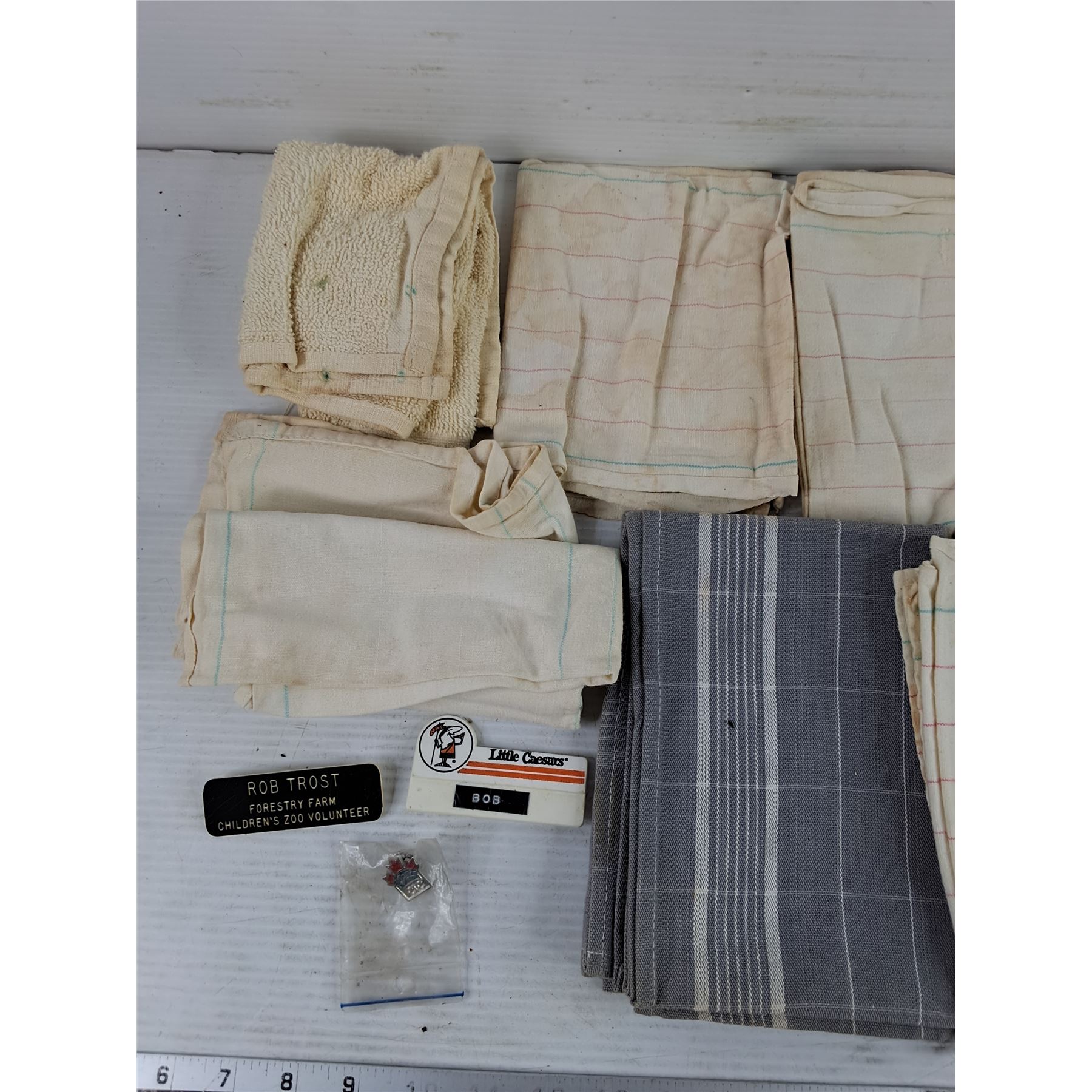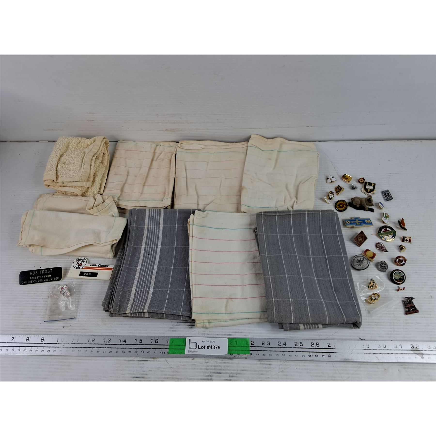 Lot 4379 (8) Kitchen Towels, Name Badges & Assorted Lapel Pins