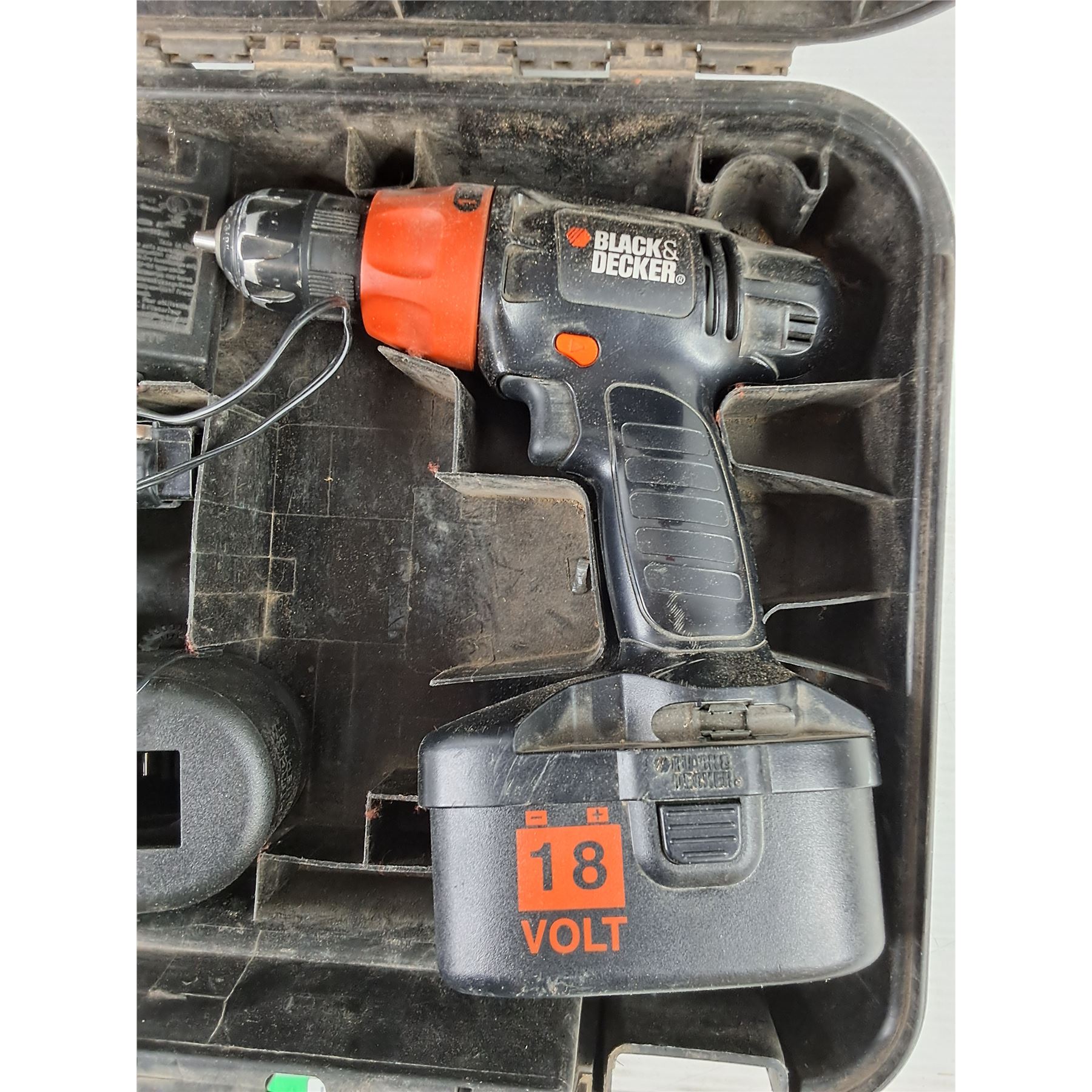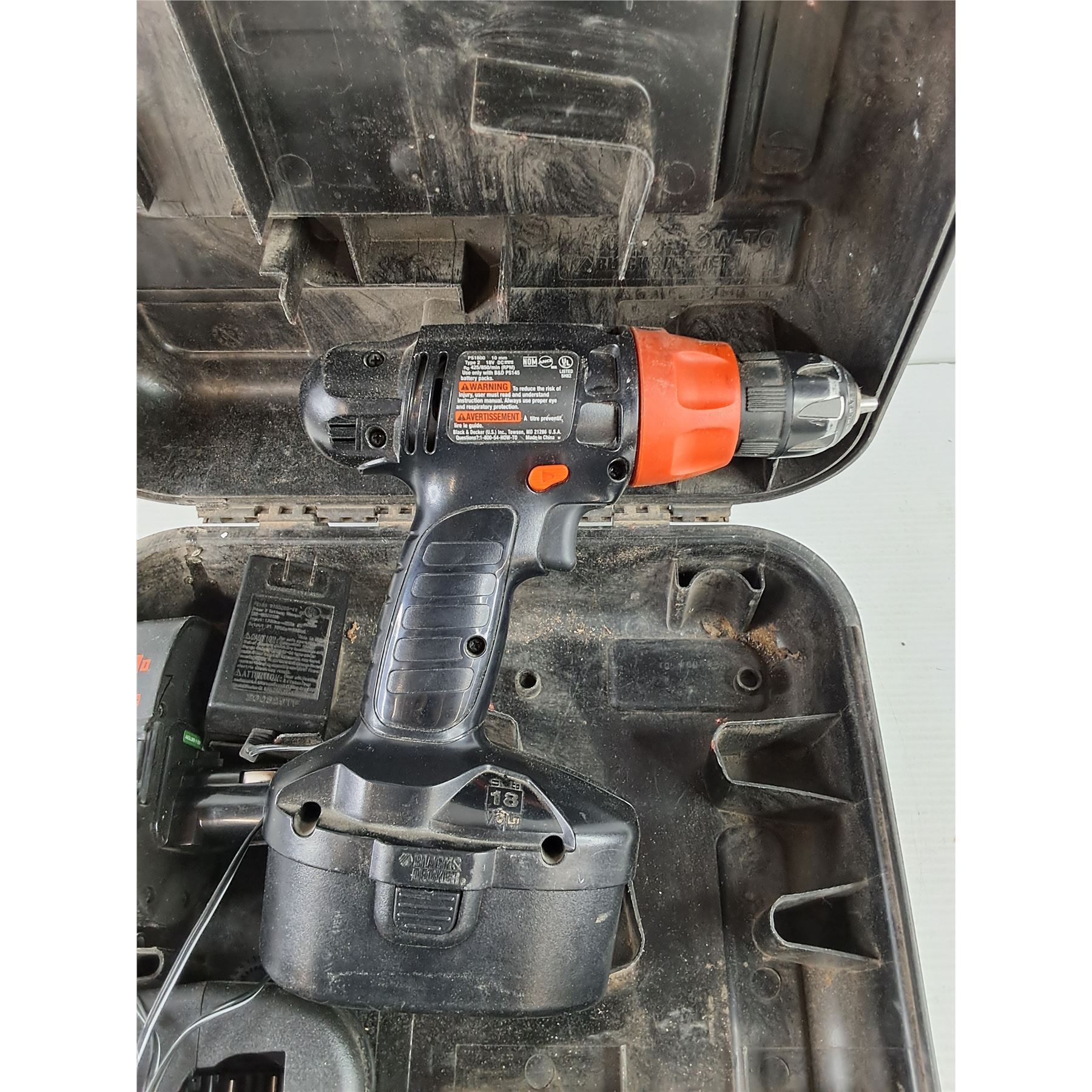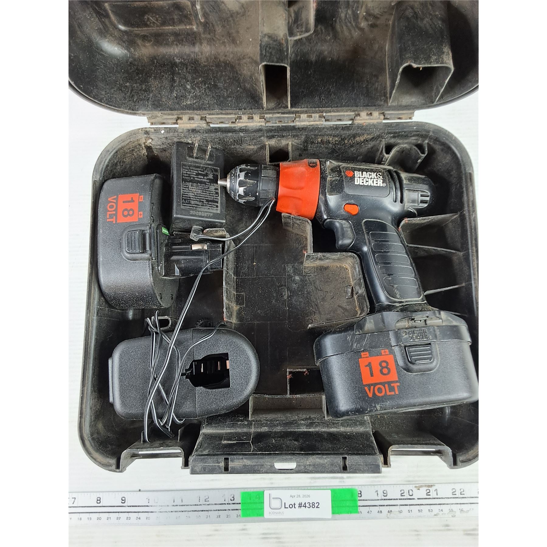 Lot 4382 Black & Decker Cordless 18V Drill, (2) Batteries & Charger - Powers On, As Is