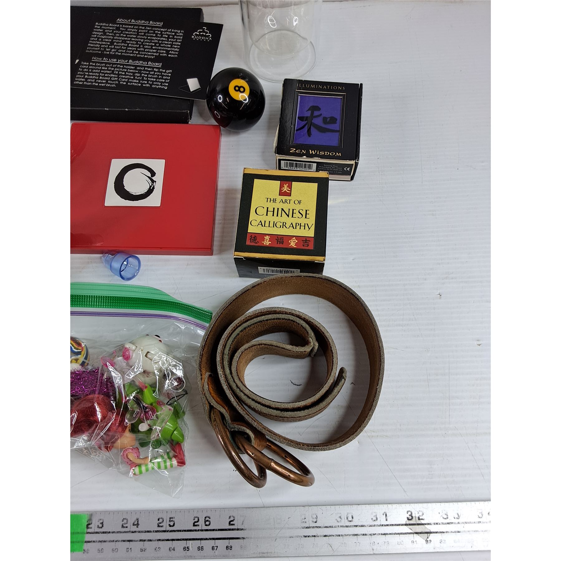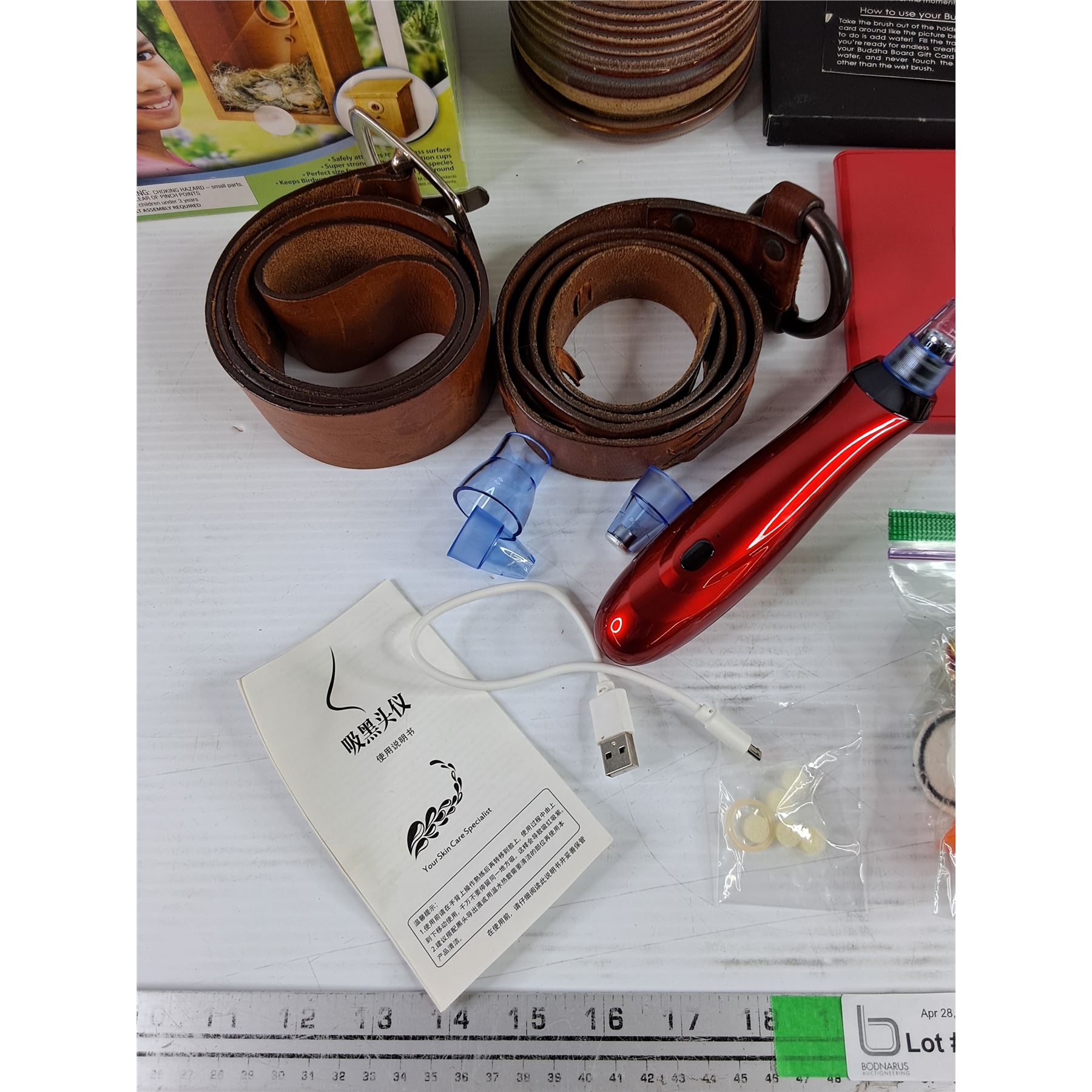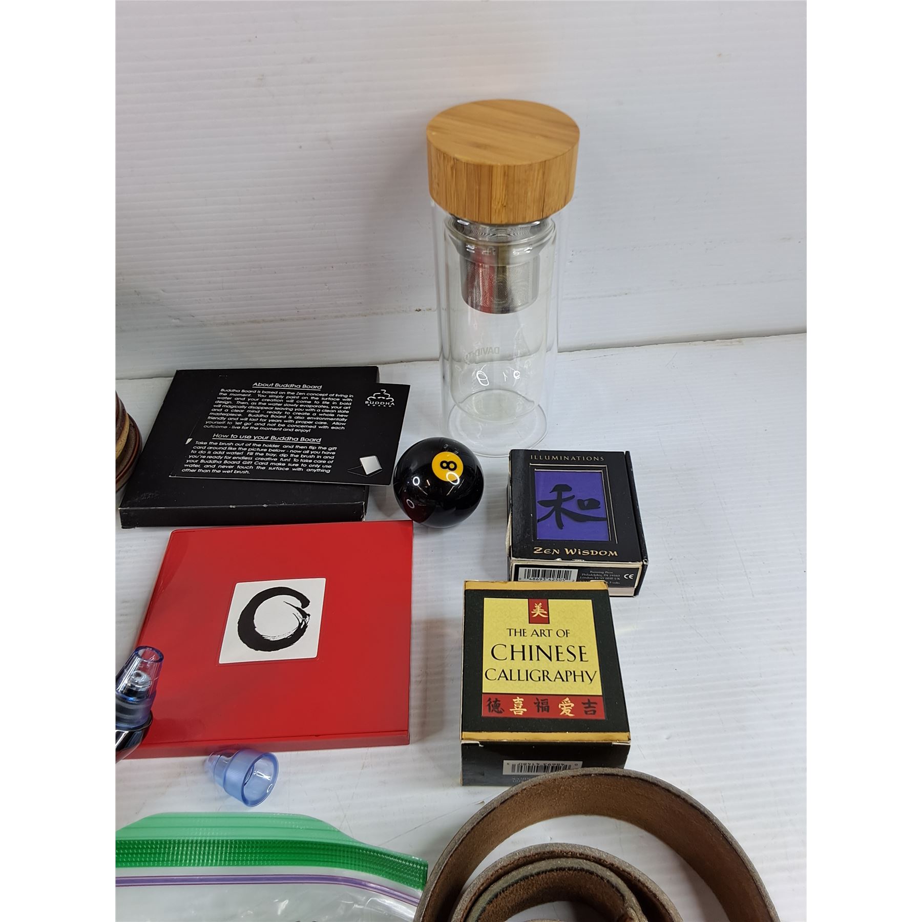 Lot 4456 My Spy Birdhouse, Buddha Board, Belts, Plant Pot, Misc