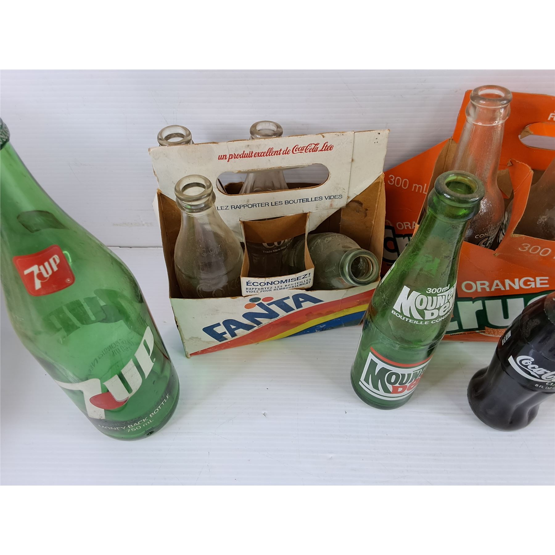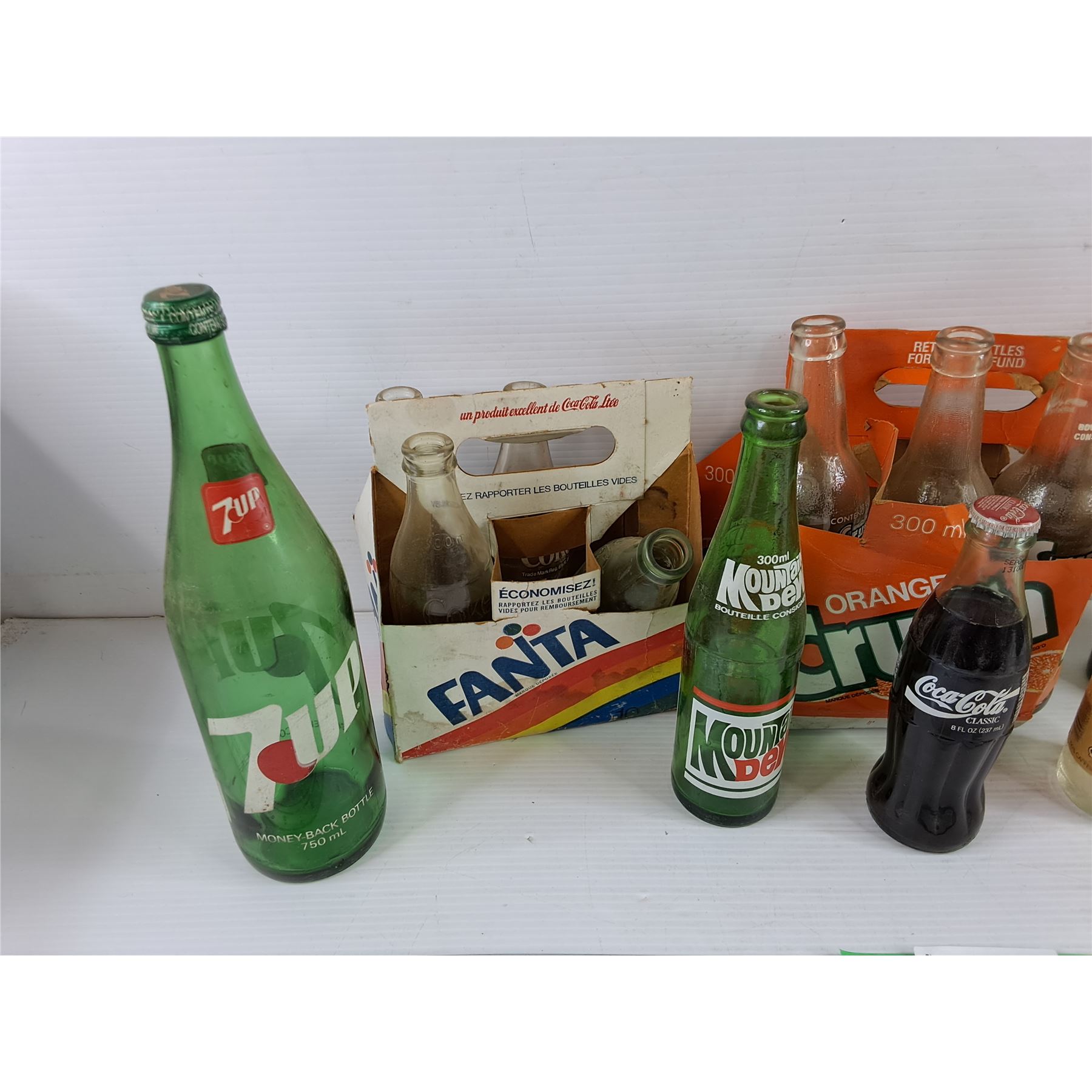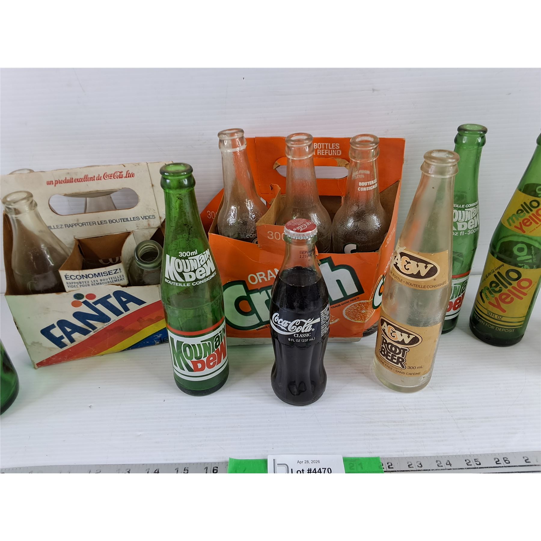 Lot 4470 Vintage Glass Pop Bottles - 7UP, Mountain Dew, Root Beer, Sealed Coca Cola Geoff Petrie Bottle