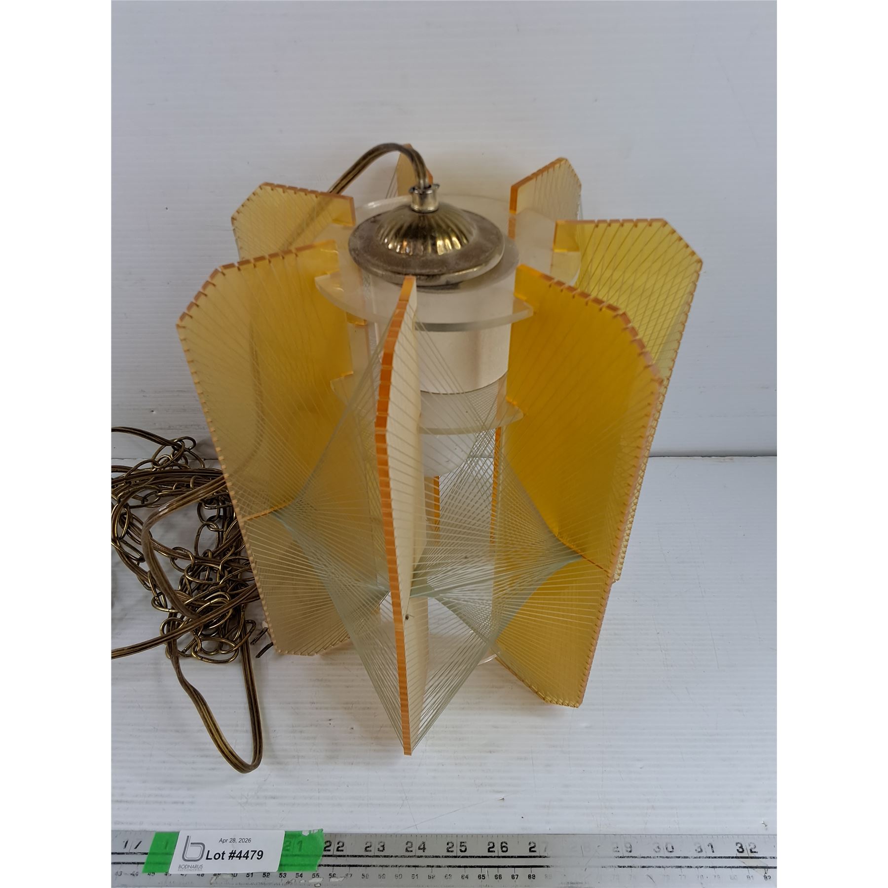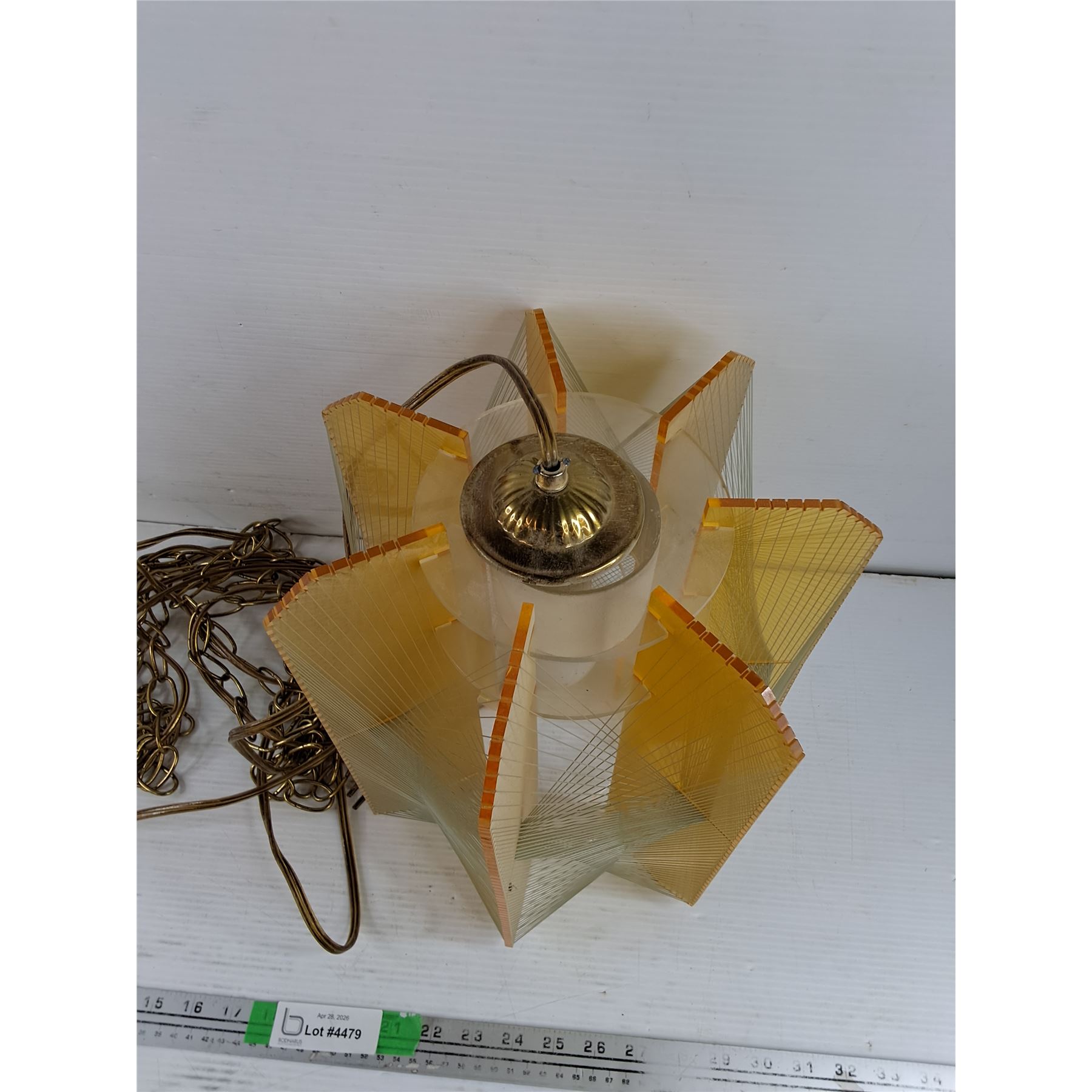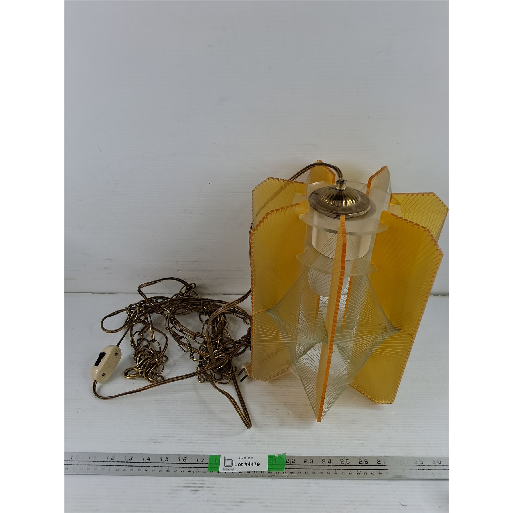 Lot 4479 Vintage MCM Hanging Light Fixture 13" x 11", Powers On, As Is - PICK UP ONLY
