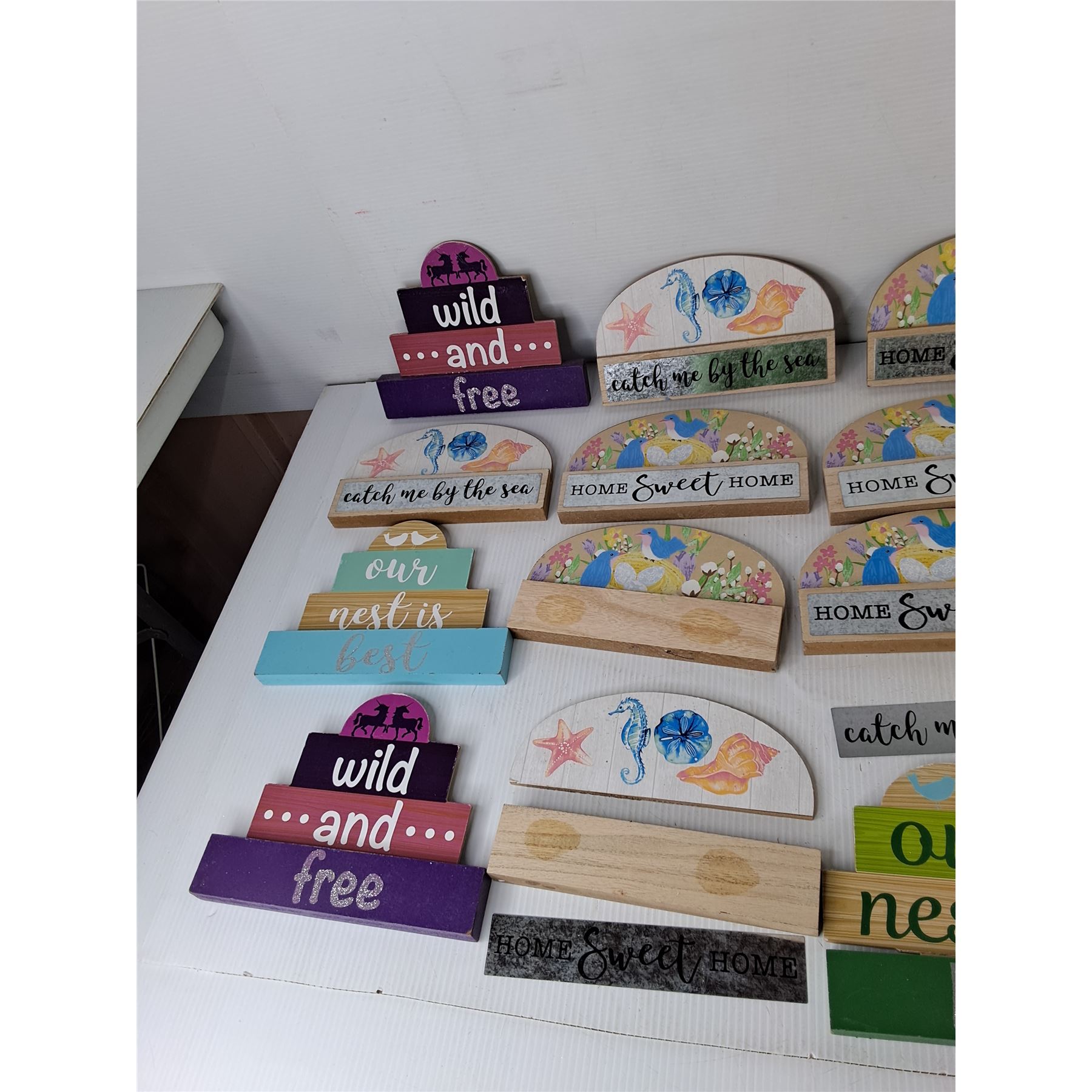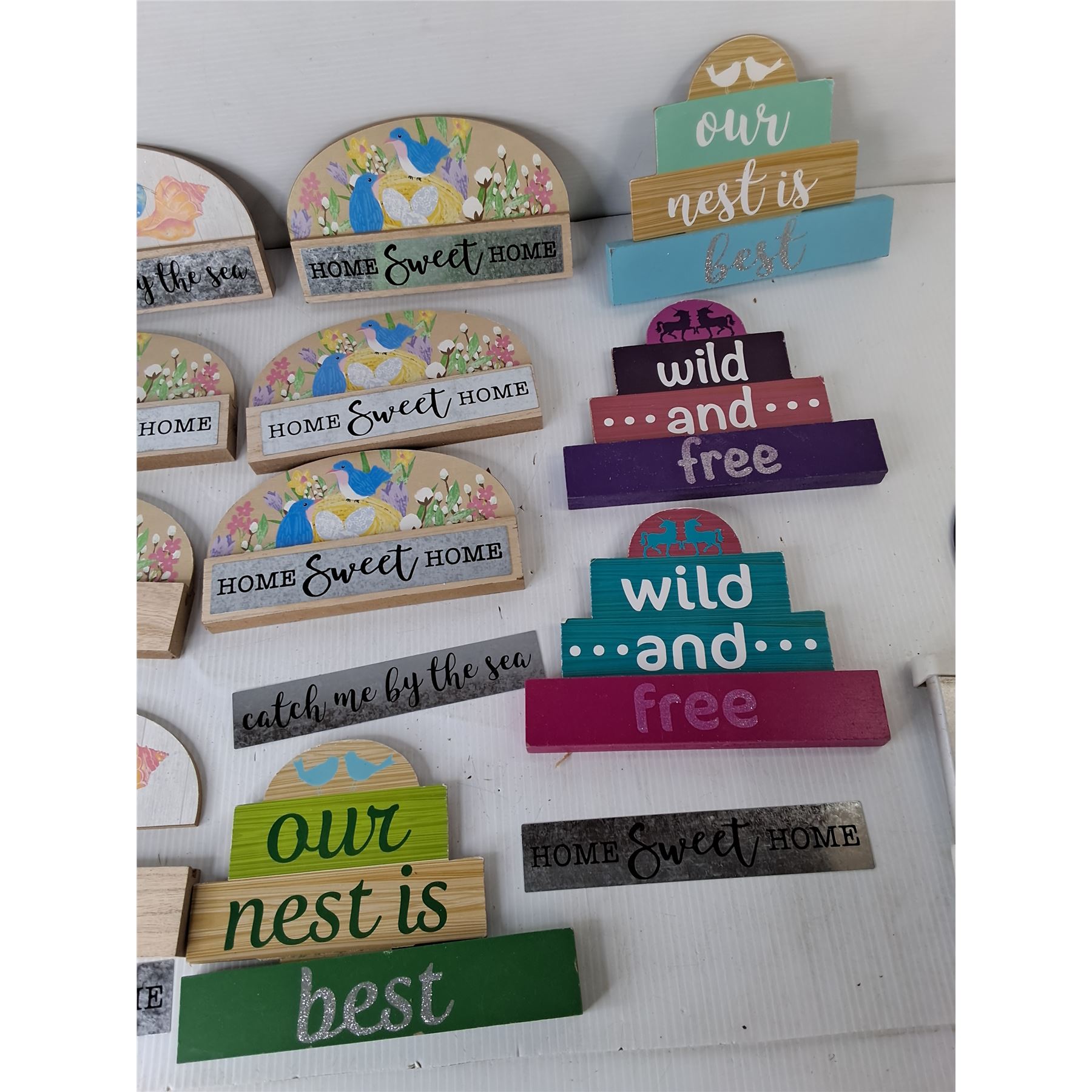 Lot 4490 Wooden Home Decor Signs- Wild & Free, Our Nest is Best, Misc.