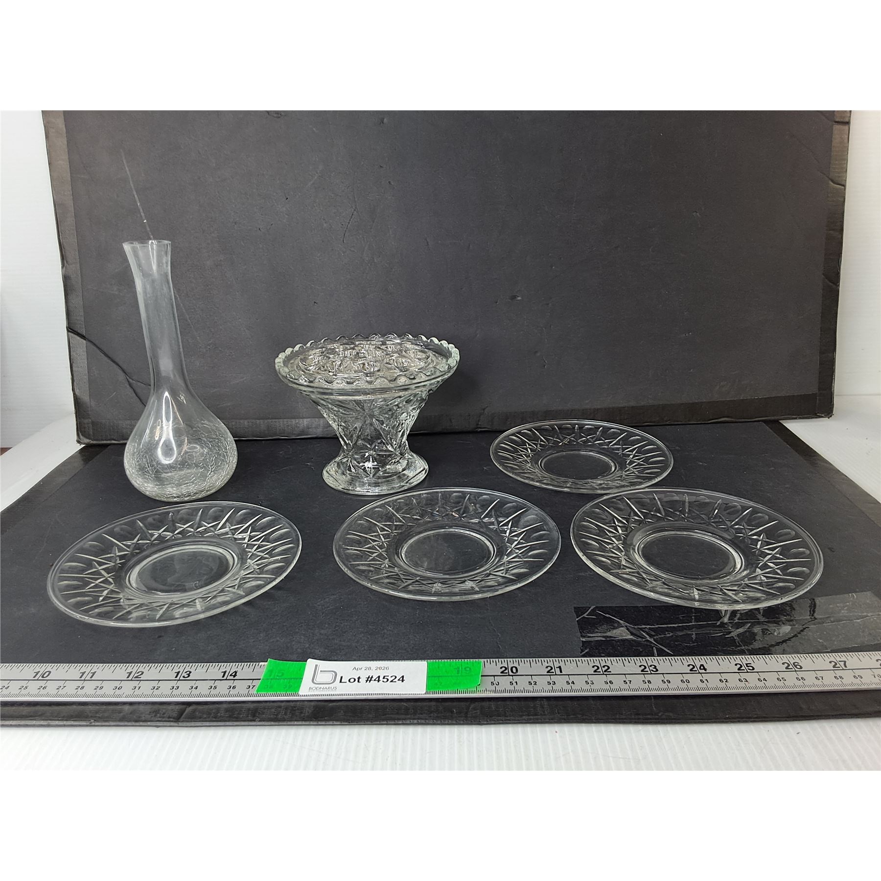Lot 4524 Glass Frog, Vase 8.25", (4) Dessert Plates