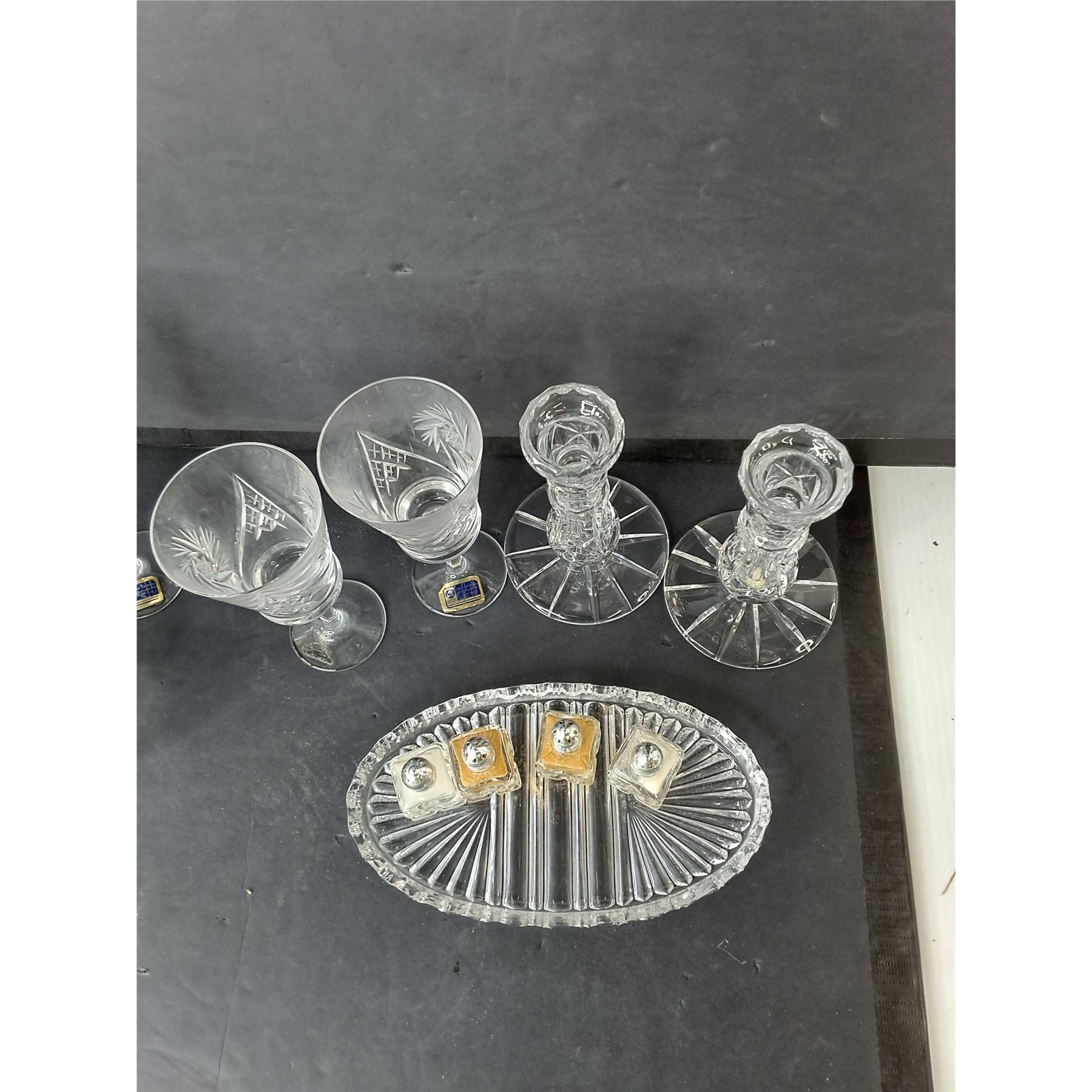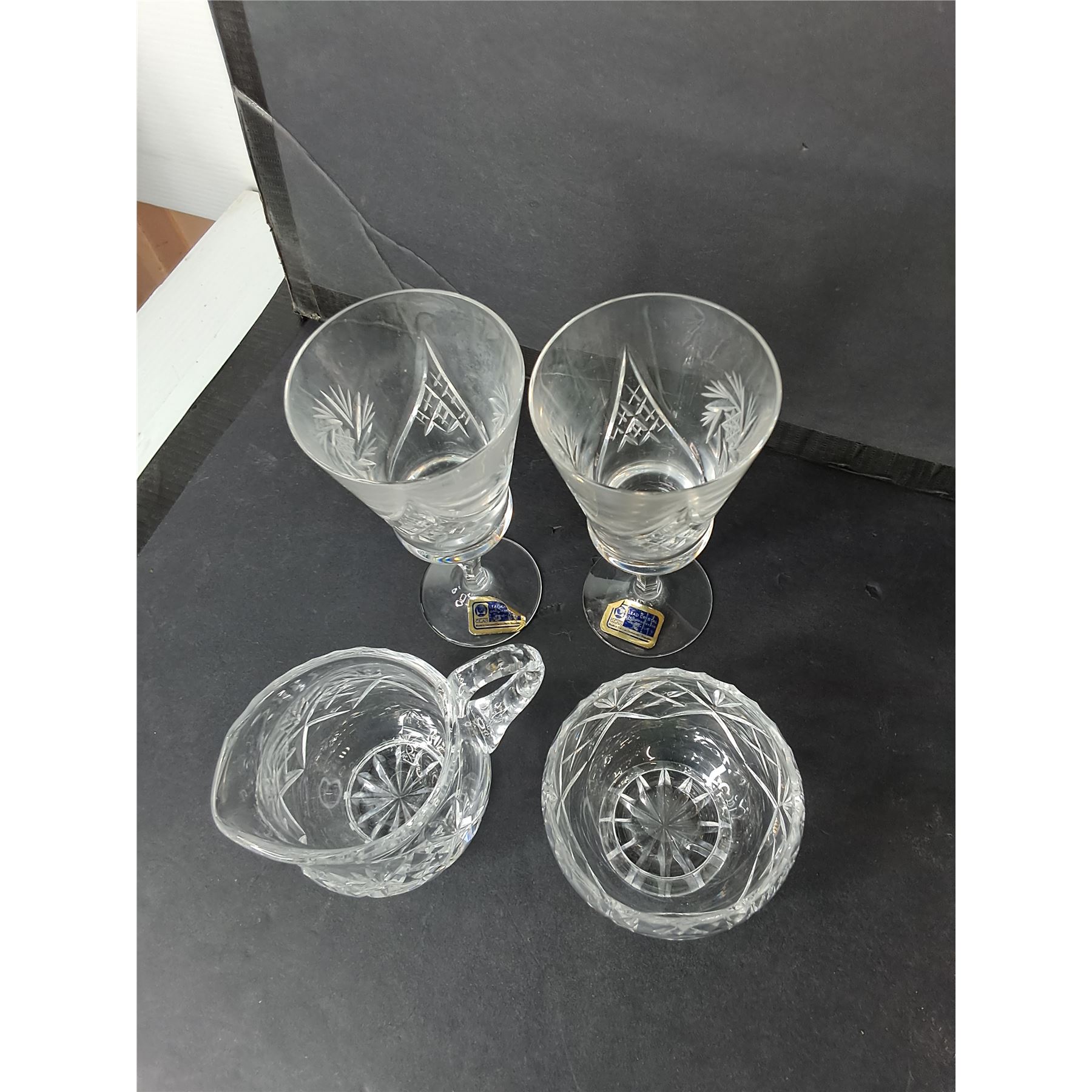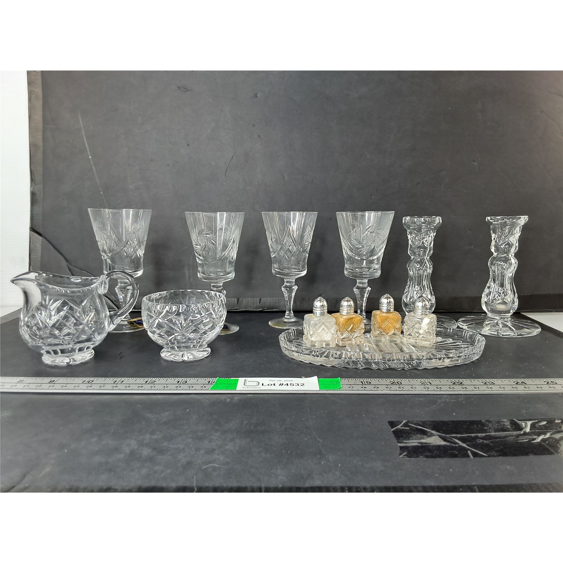 Lot 4532 (4) Crystal Wine Glases, Creamer, Sugar Bowl, Glass Candleholders, Misc. - PICK UP