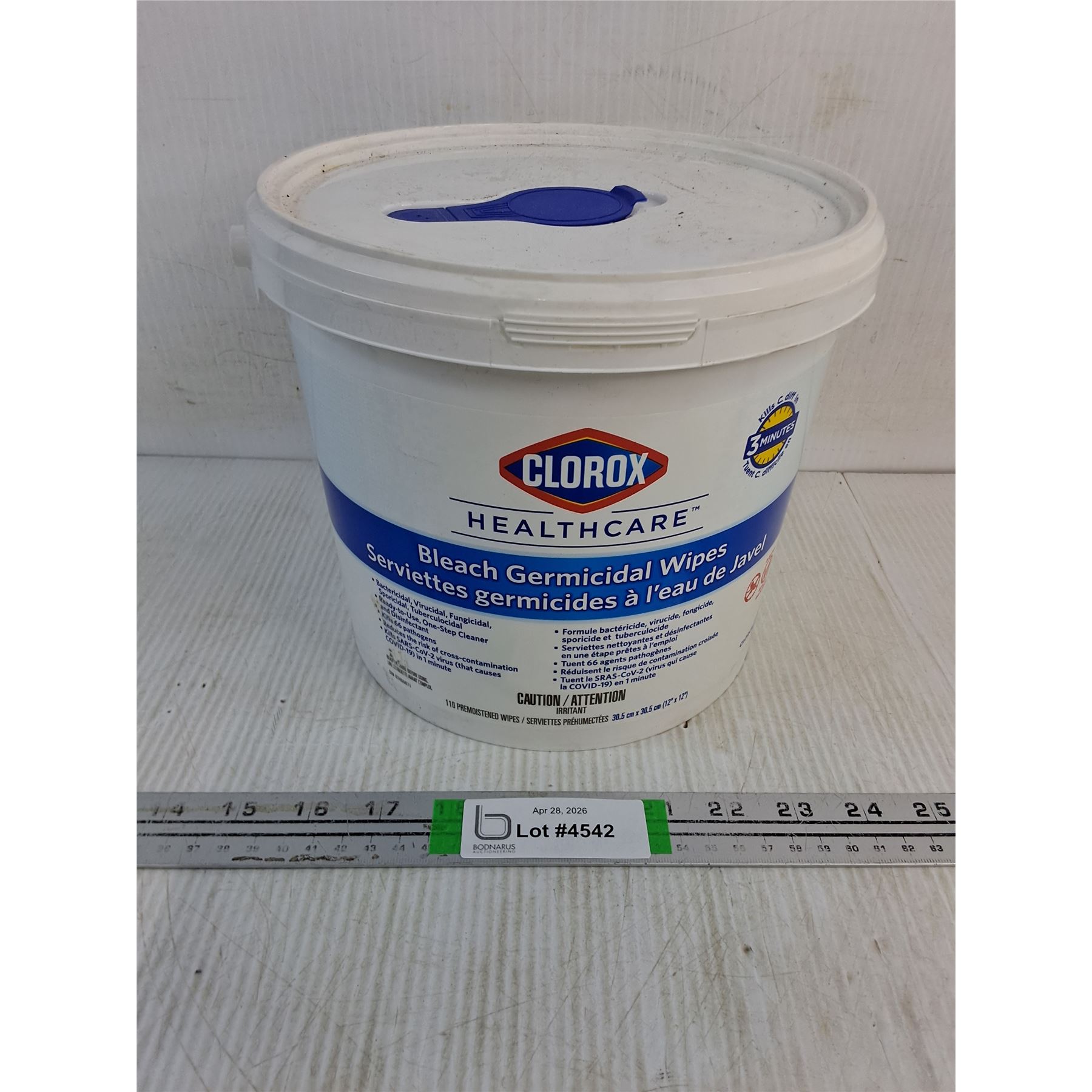 Lot 4542 Pail of Clorox Bleach Germicidal Wipes, Cannot Ship