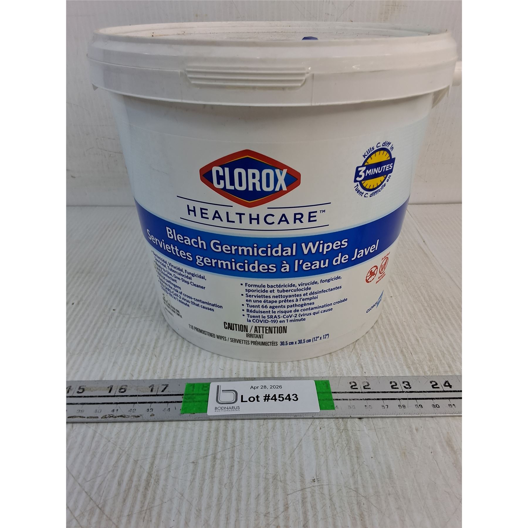Lot 4543 Pail of Clorox Bleach Germicidal Wipes, Cannot Ship