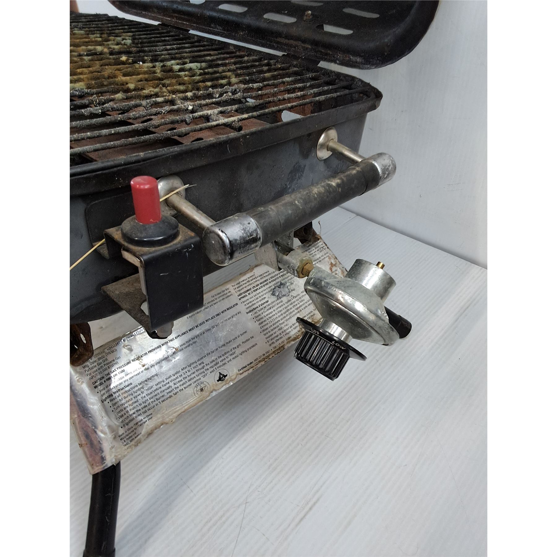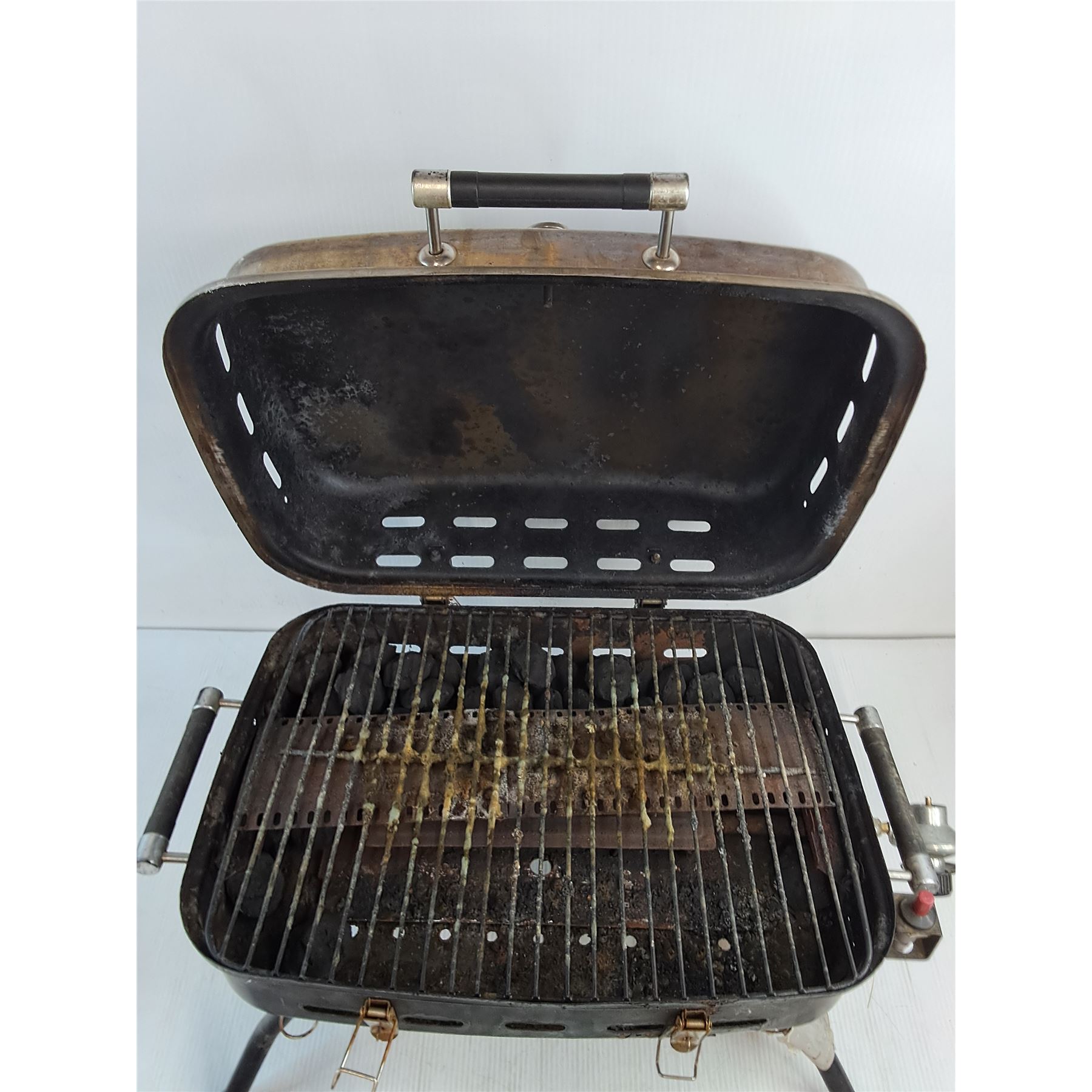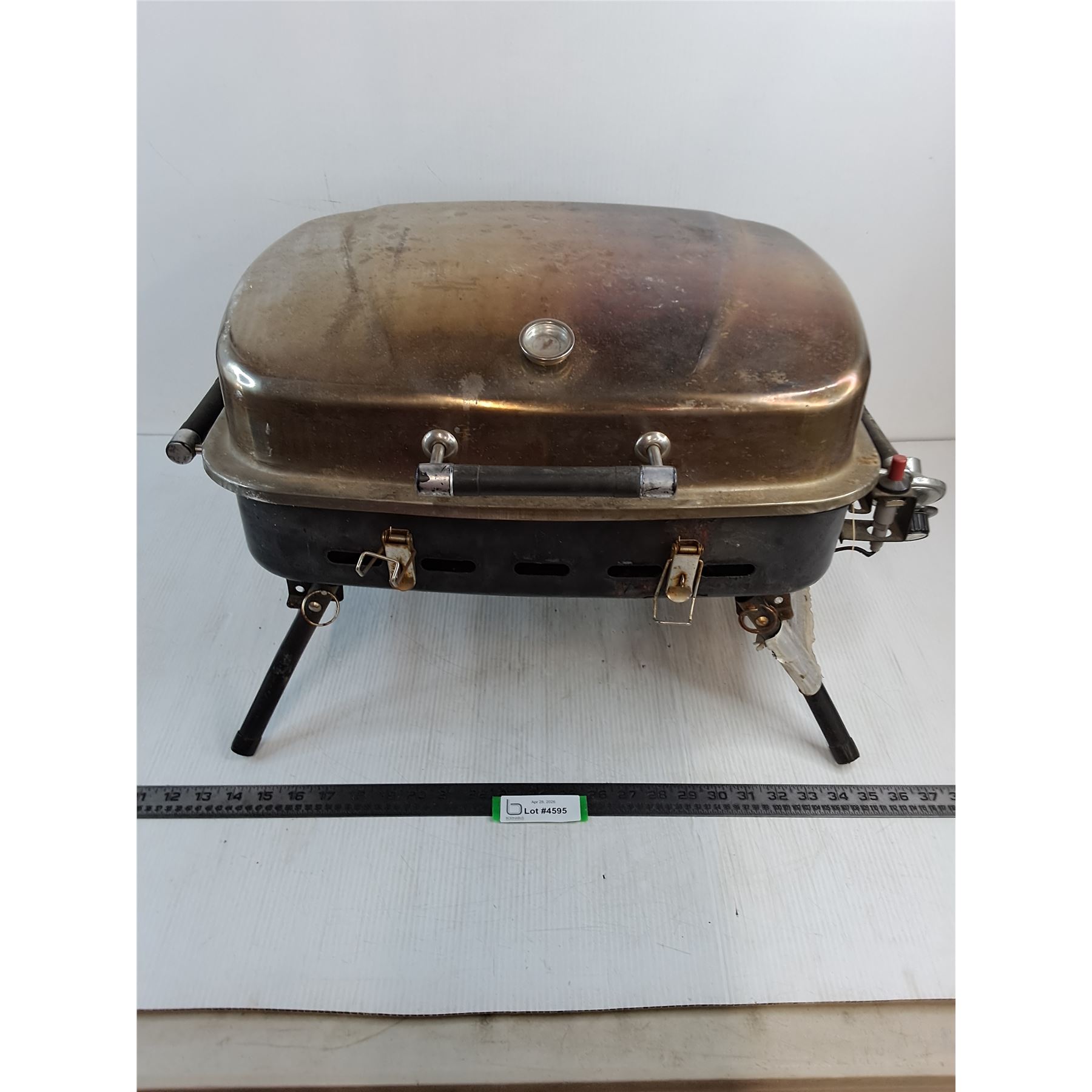 Lot 4595 Table Top Propane BBQ - Missing 2 Cotter Pins for Back Legs-As is - 25x14x15" - CANNOT SHIP