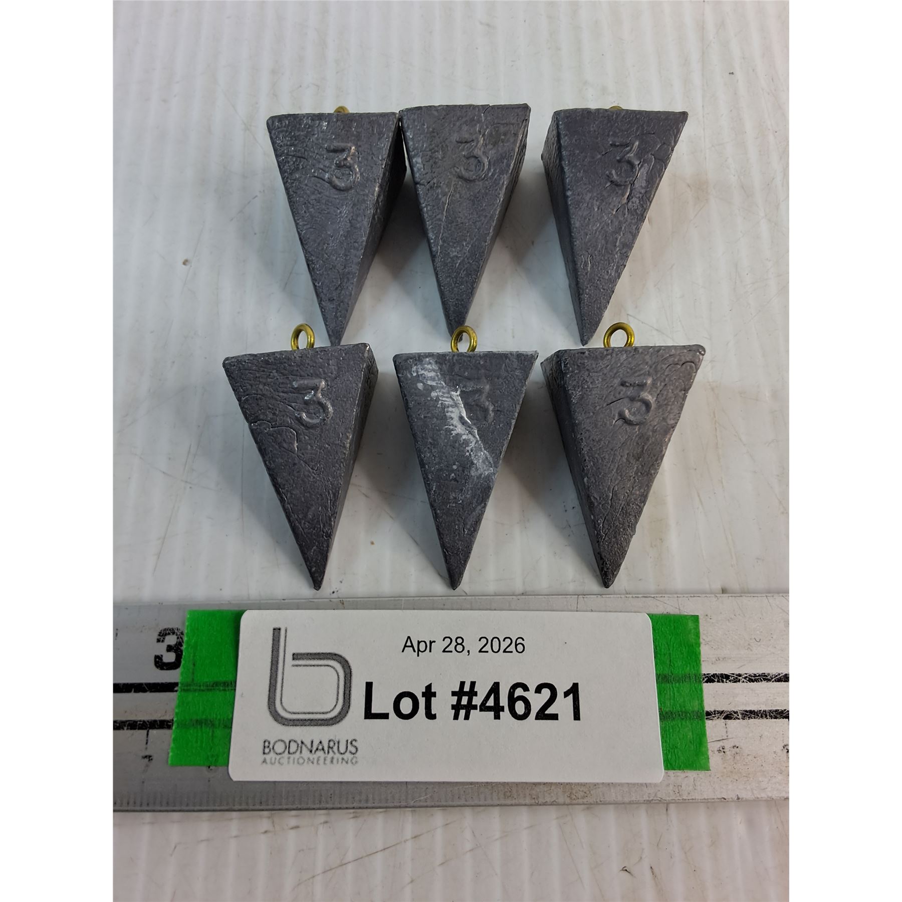 Lot 4621 (6) Lead Pyramid Fishing Weights- 3 Oz.