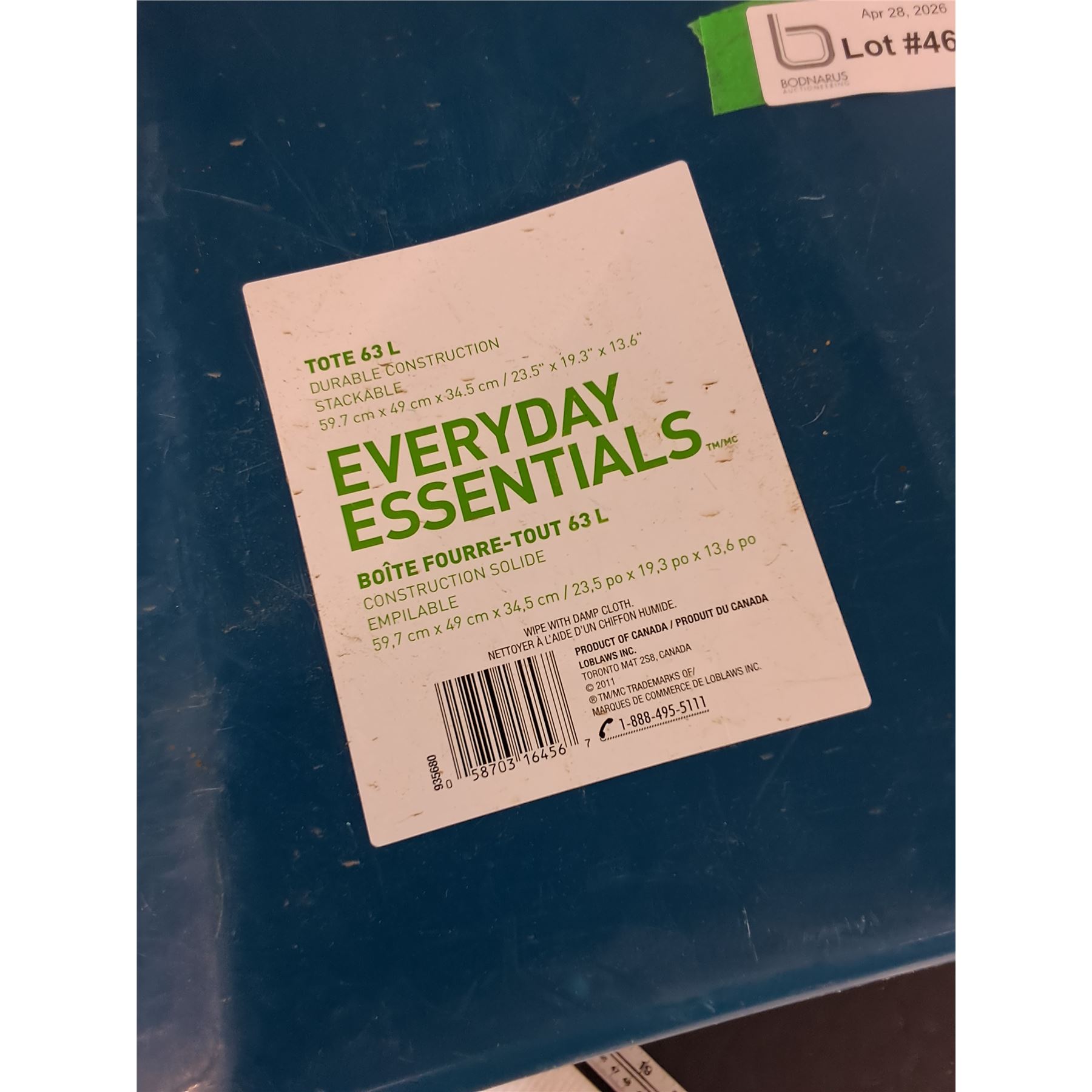 Lot 4661 * (2) Everyday Essentials 72 L 23.5"×19.9"×15.3" & (2)Type A Storage Containers Totes, Cannot Ship