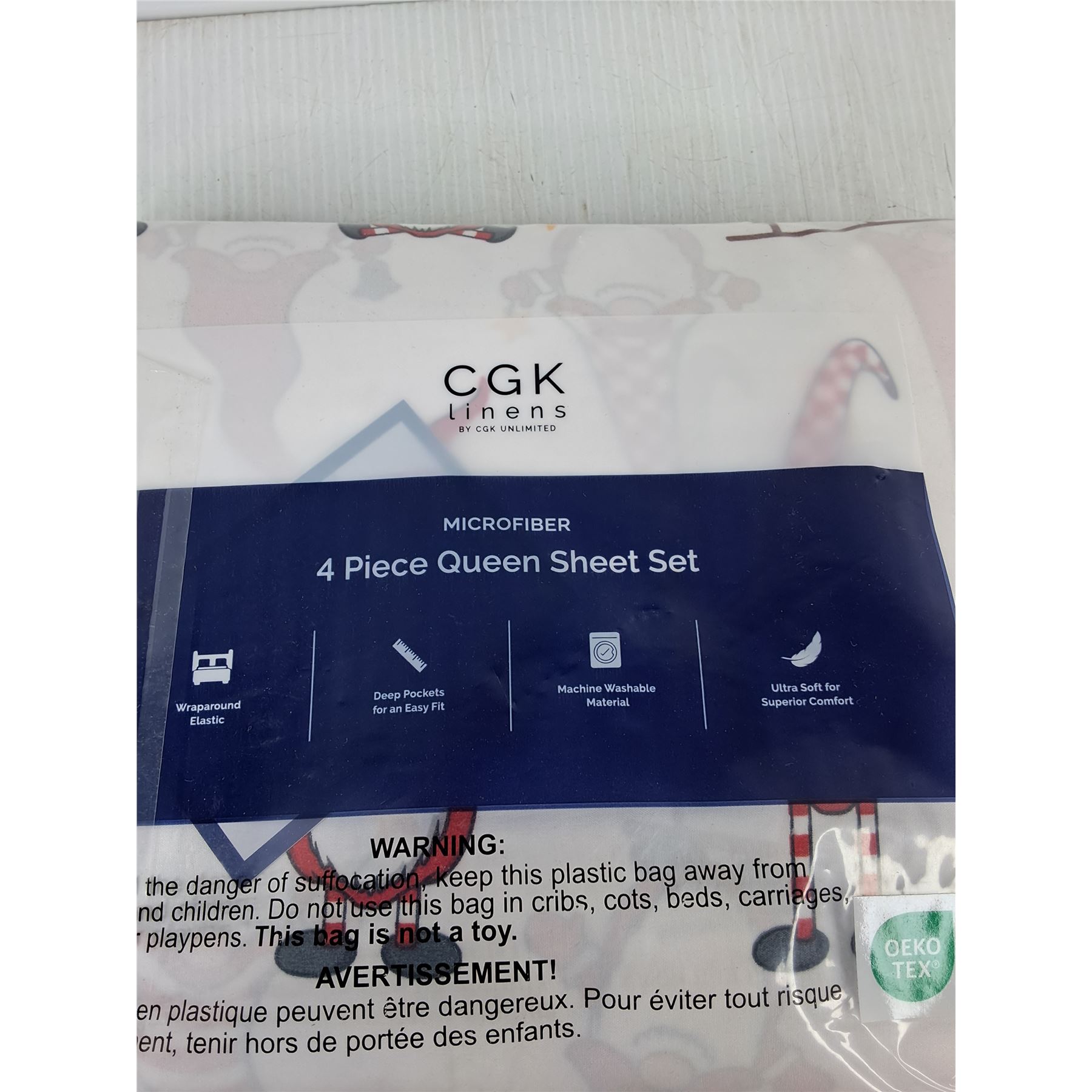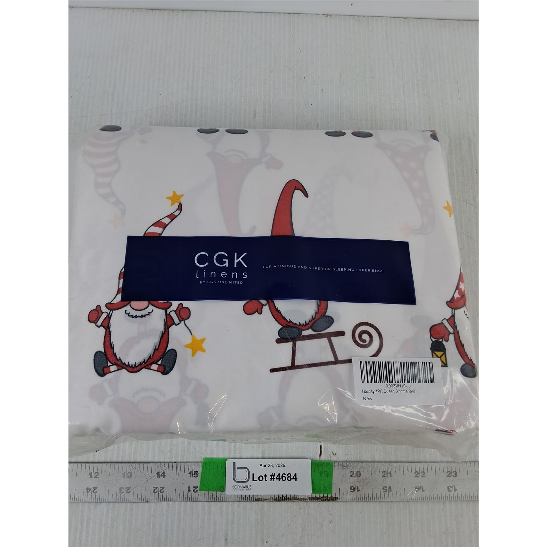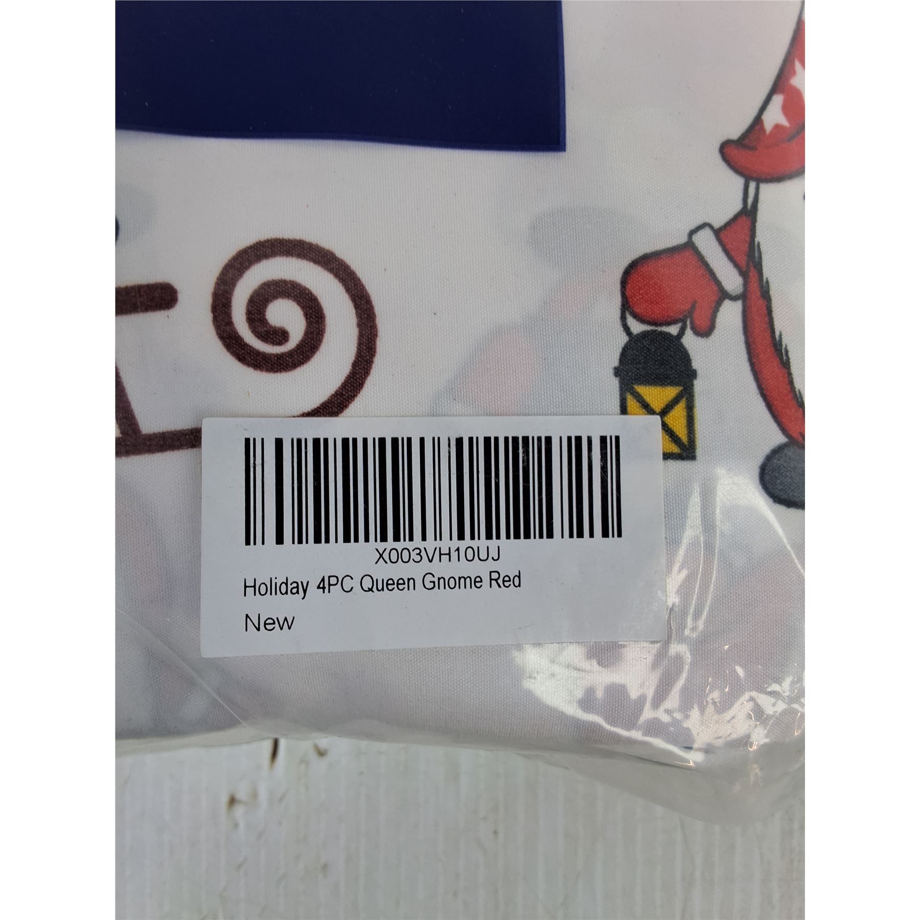 Lot 4684 CGK Linens (4) Piece Christmas Gnomes Themed Queen Sheet Set Appears New