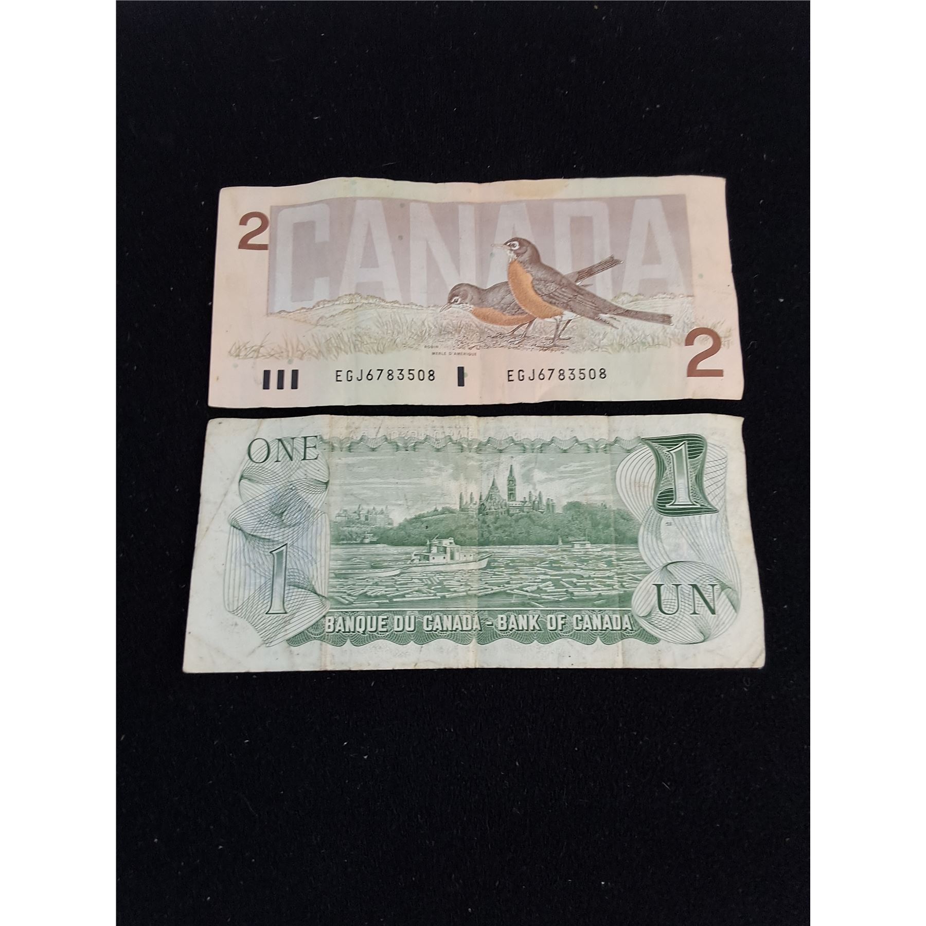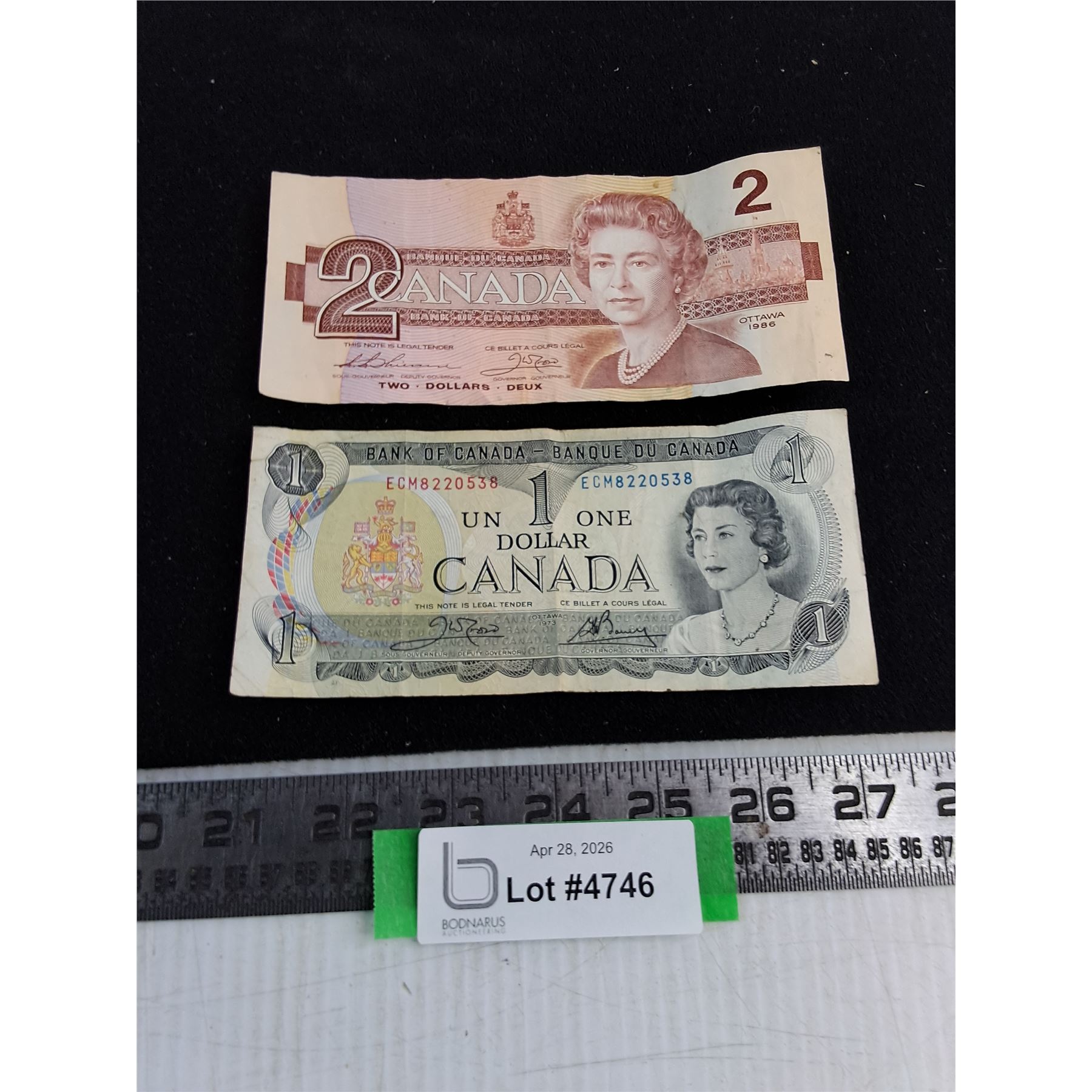Lot 4746 (2) Canadian Bank Notes ($2 from 1986 & $1 from 1973)