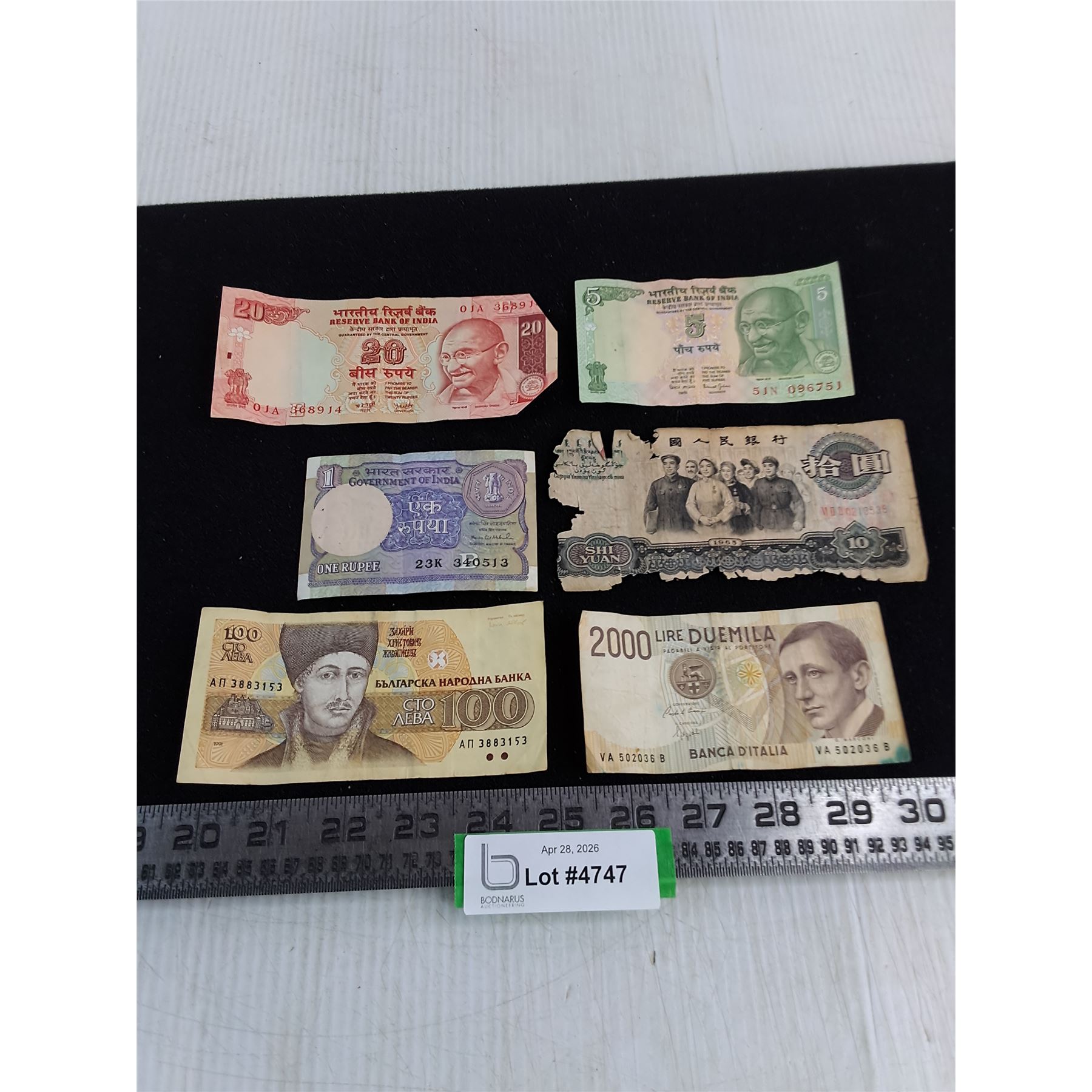 Lot 4747 (6) Foreign Bank Notes from India, Bulgaria, China & Italy