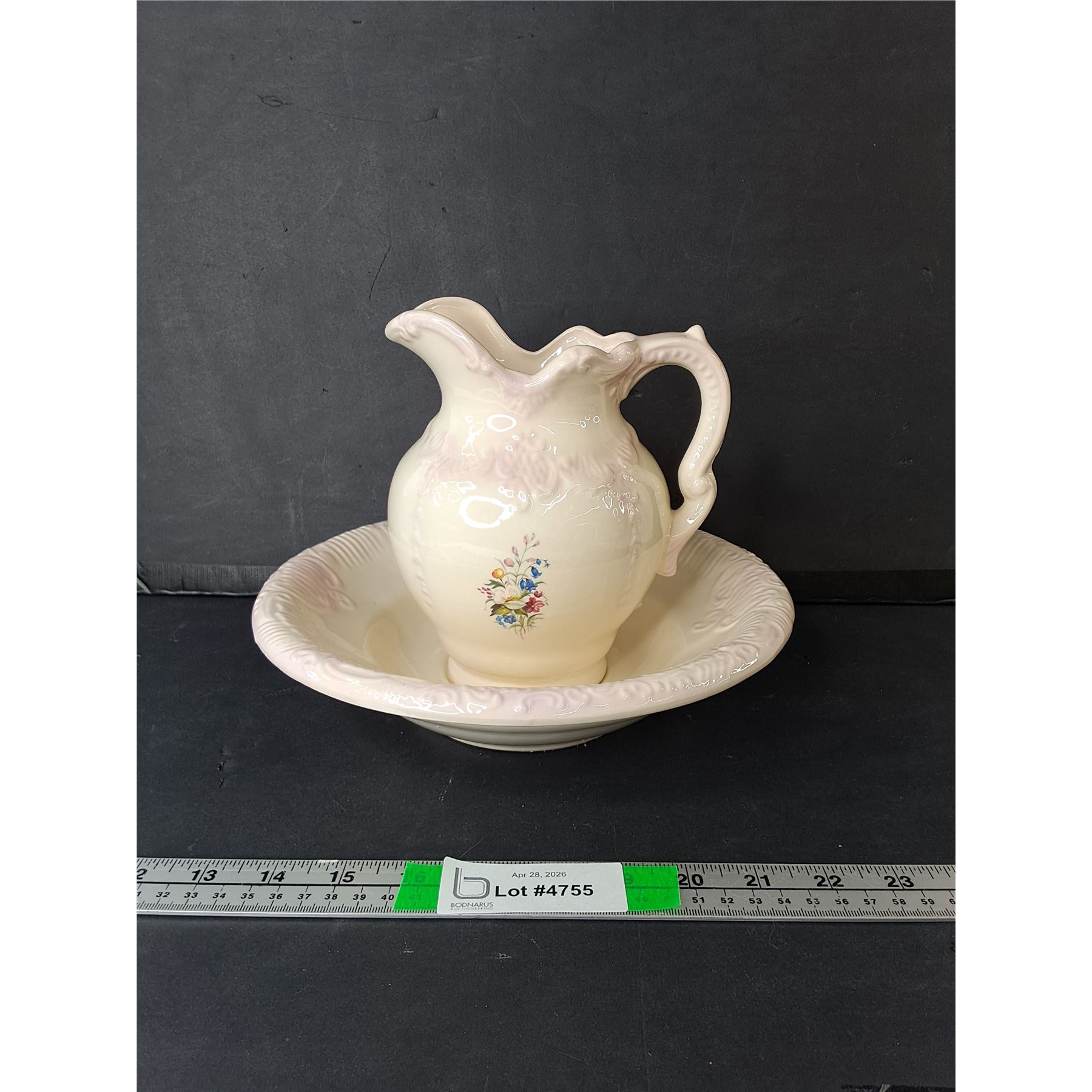 Lot 4755 Ceramic Pitcher & Bowl 10.25" Diameter