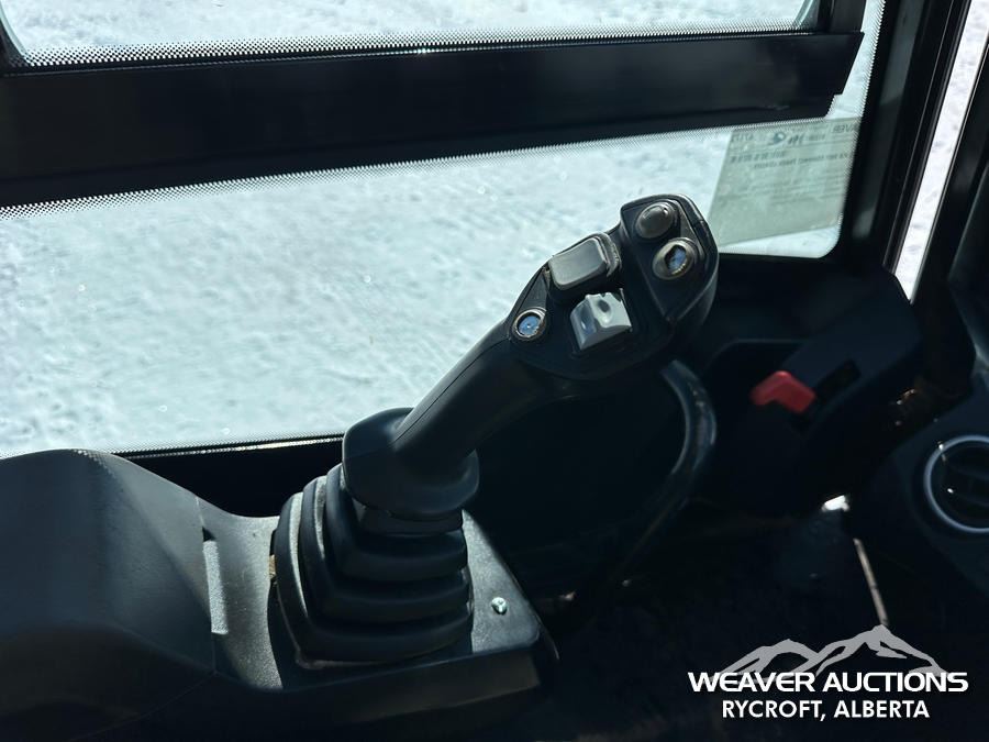 Specifications: ENCLOSED CAB, AIR CONDITIONER, RIDE CONTROL, JOYSTICK STEERING, 18 IN TRACKS, 14 PIN ELECTRIC KIT, MANUAL COUPLER, 70 IN BUCKET