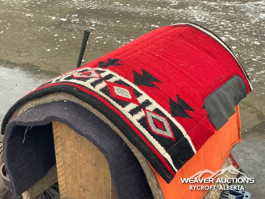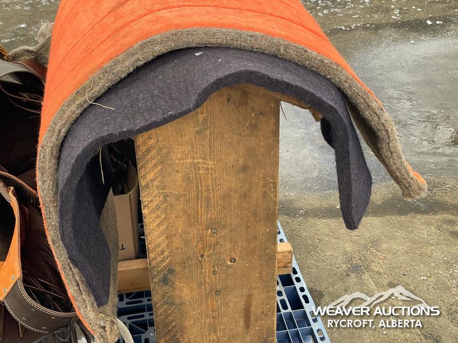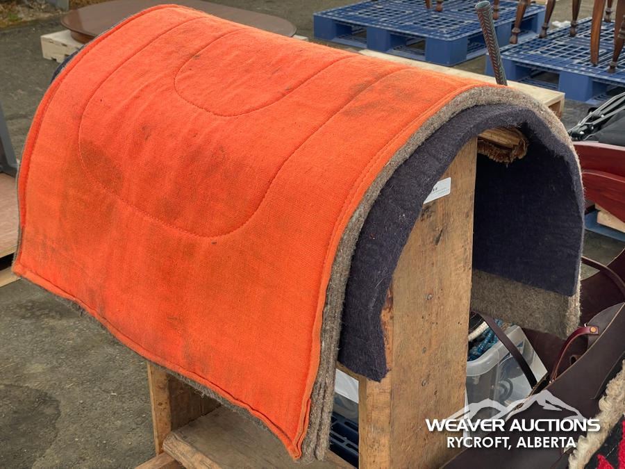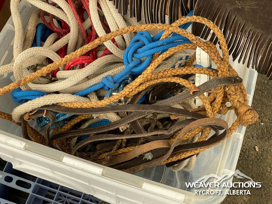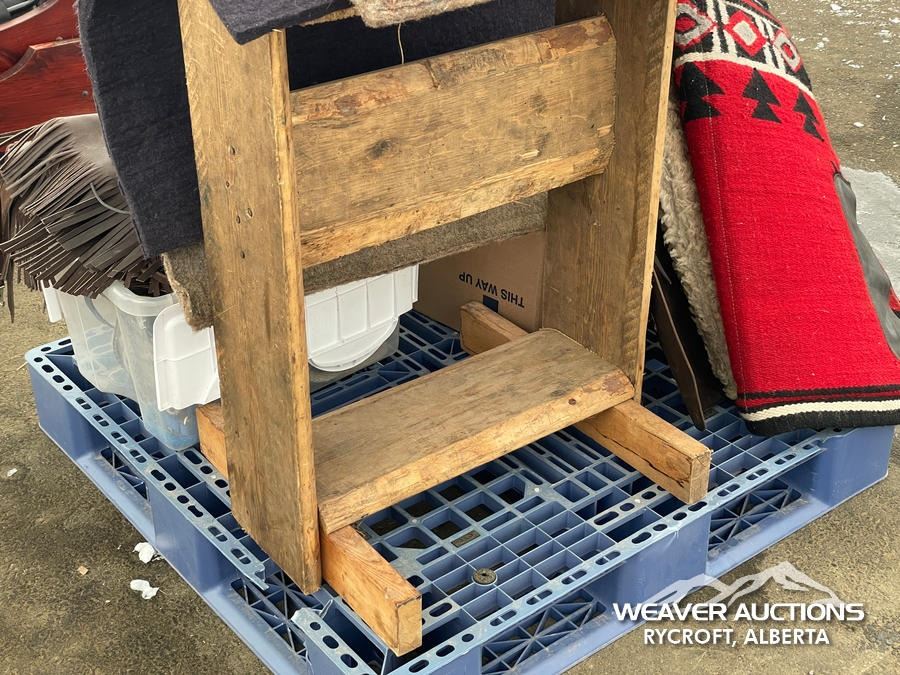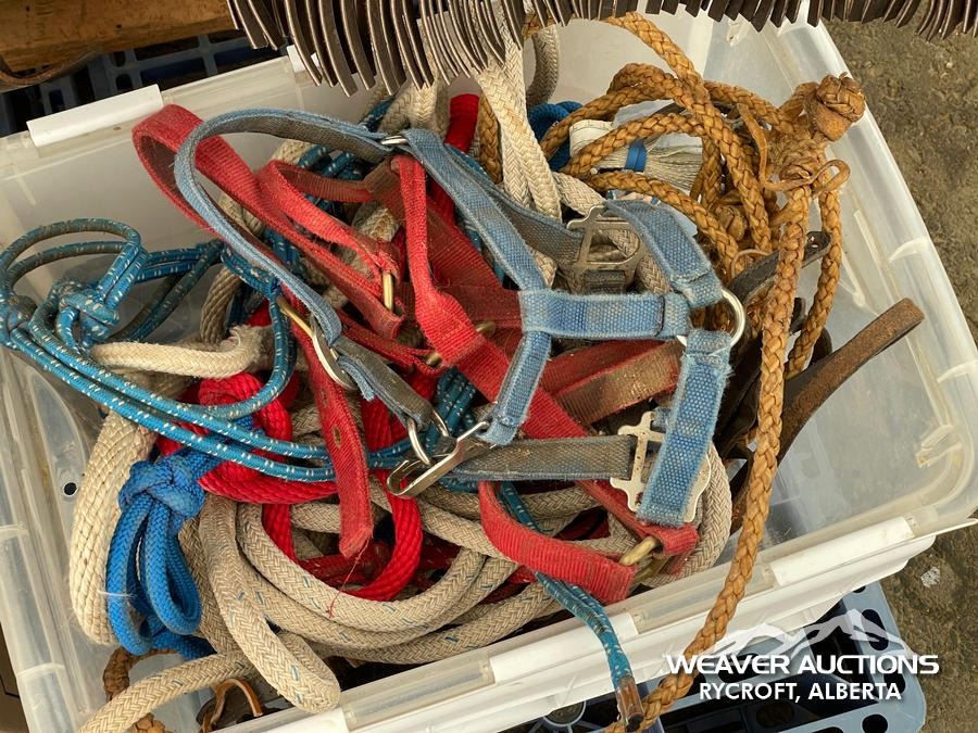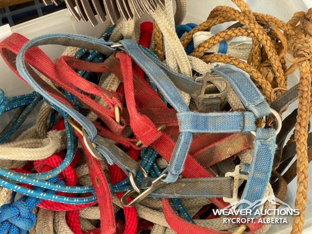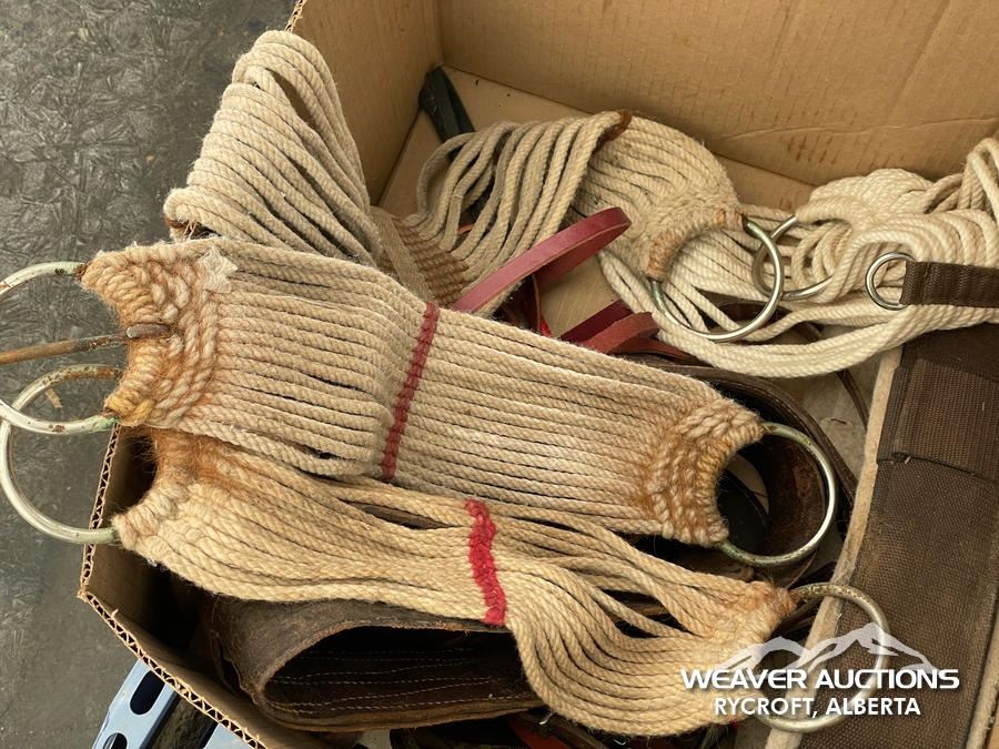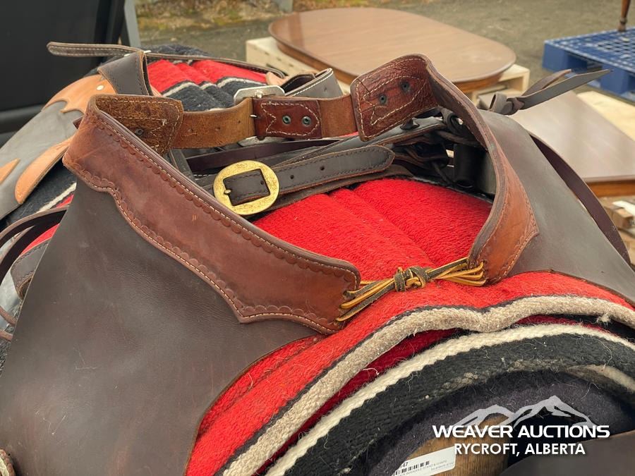 Specifications: (1) SADDLE STAND, (2) SADDLE PADS, (1) PAIR OF CHAPS, (1) PAIR OF CHINKS, (2) PRO CHOICE SADDLE PADS, HORSEMANSHIP BRIDLE W/IRON SNAFFLE BIT, PARELLI CARROT STICK, ROPE HALTERS, 15 FT. LEAD ROPE, 30 FT. LUNGE ROPE, ASSORTED SADDLE COMPONANTS, LEATHER BRIDLE W/SNAFFLE BIT, (1) PAIR OF SADDLE BAGS, LEATHER RIENS