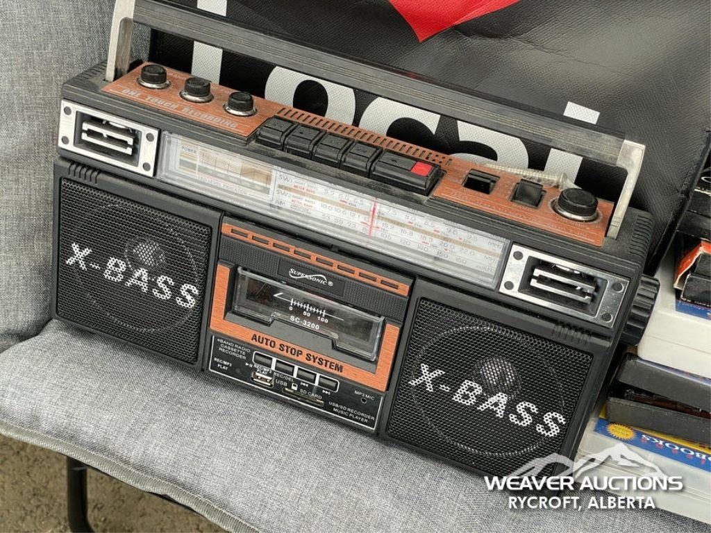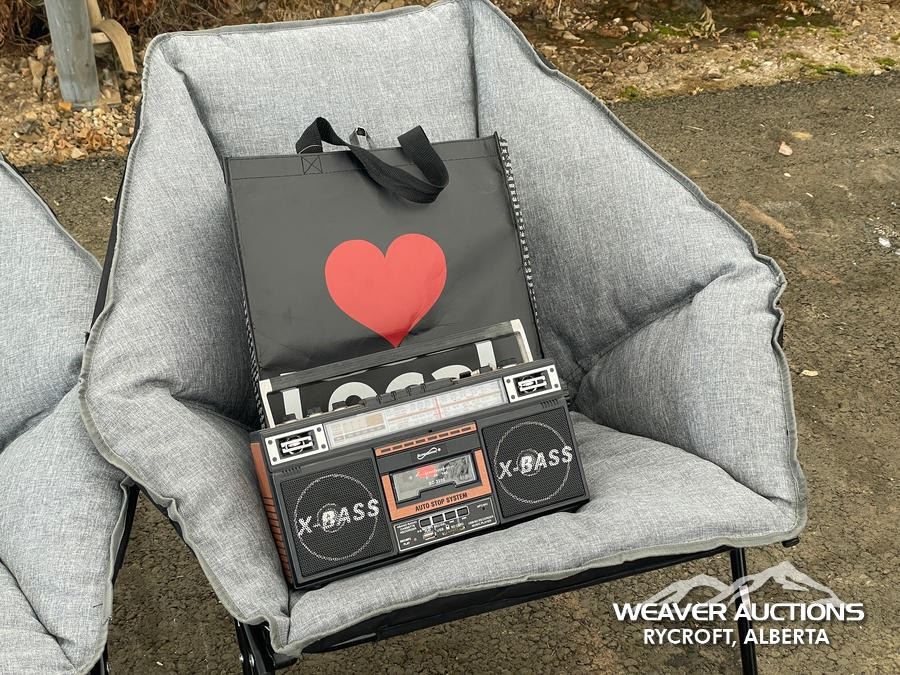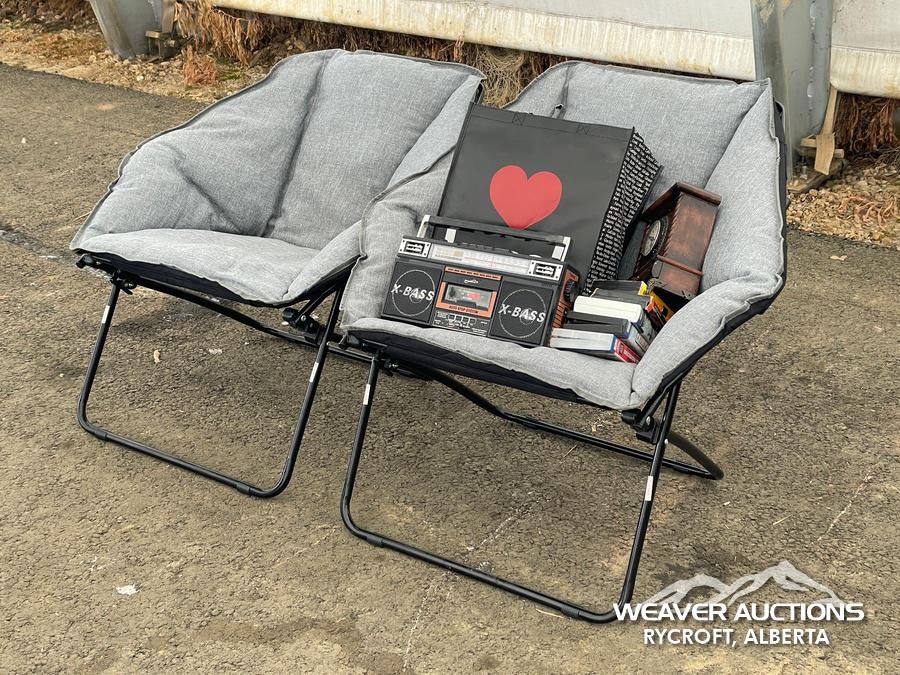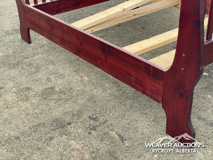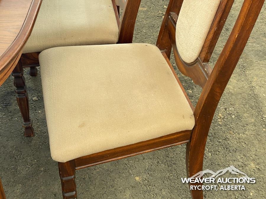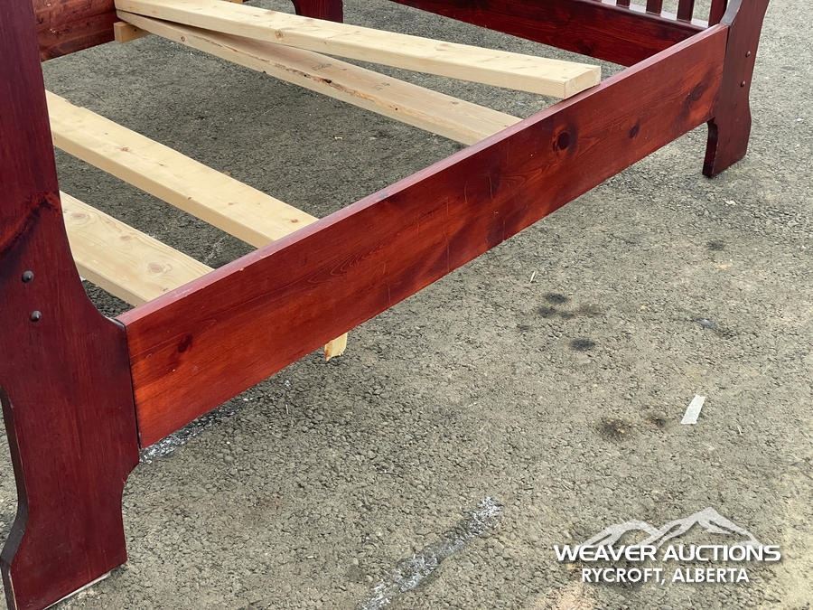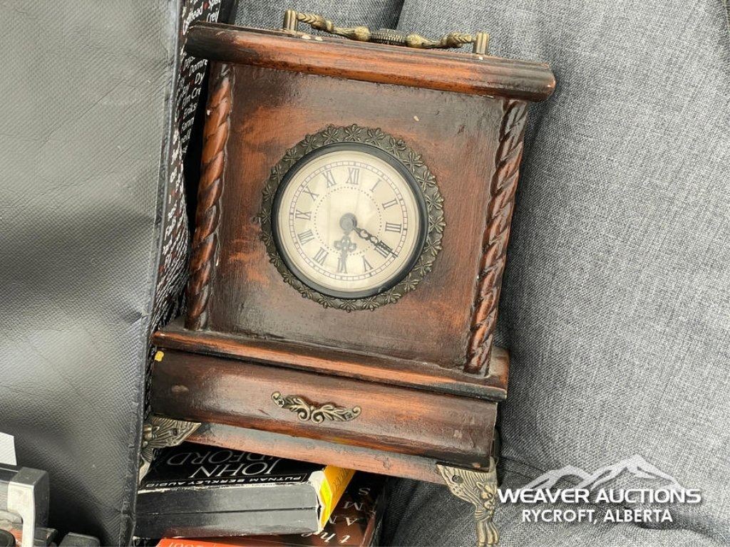 Specifications: SLEIGH BED FRAME, 2 PAPASON CHAIRS, OVAL WOODEN DINNING TABLE, (4) SIDE CHAIRS, (2) END TABLE CHAIRS, (1) TABLE LEAF, (1) CASSET PLAYER W/ASSORTED "BOOK ON TAPE" CASSETTS, (1) ORNAMENTAL CLOCK
