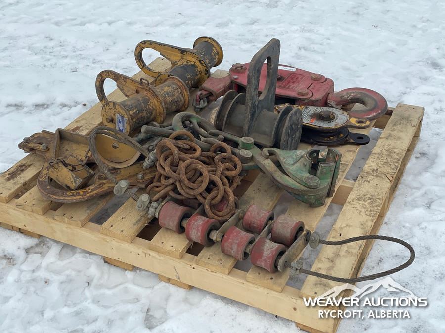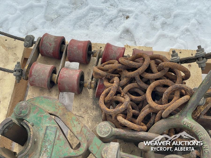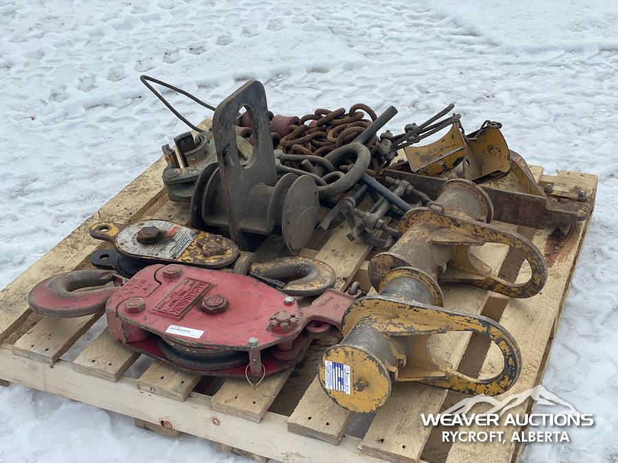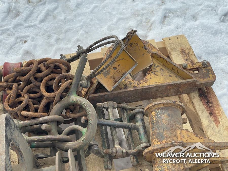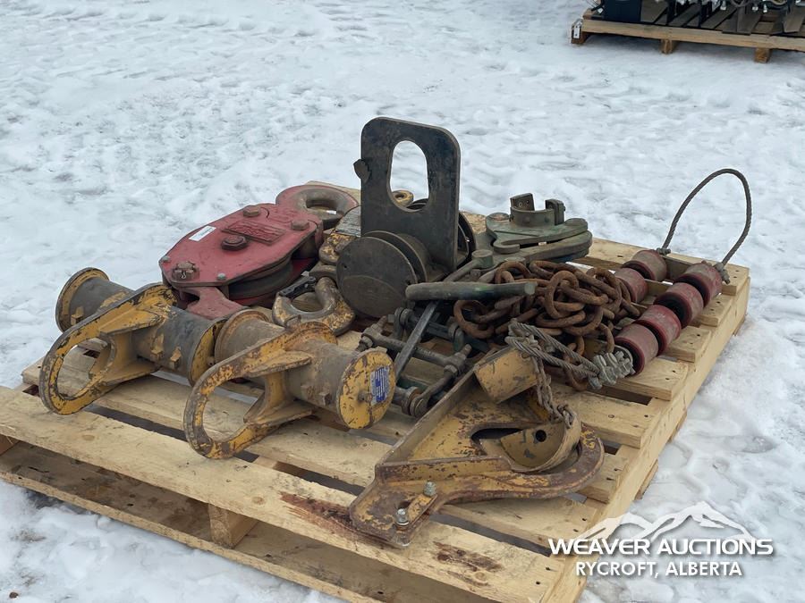 Specifications: DIG BUCKET TEETH, (2) PULLEYS, PIPE LIFTING CLAMPS