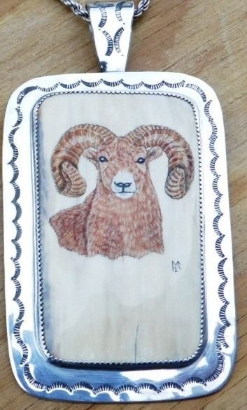 Lot 1 Sterling Silver and Mammoth Tusk Bighorn Sheep Pendant by Marv Clyncke
