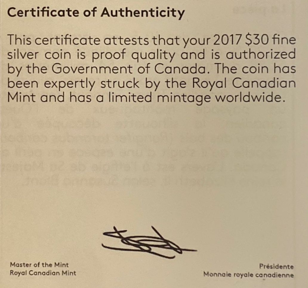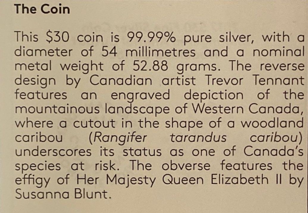 Lot 36 2017 $30 Caribou Fine Silver Coin 52.88 Grams
