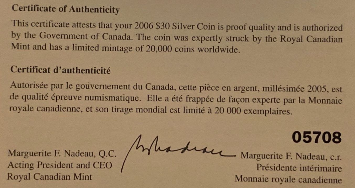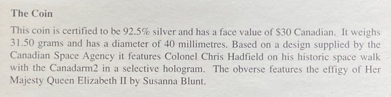 Lot 43 2006 Chris Hadfield $30 Proof Coin 92.5% Silver 31.50 Grams