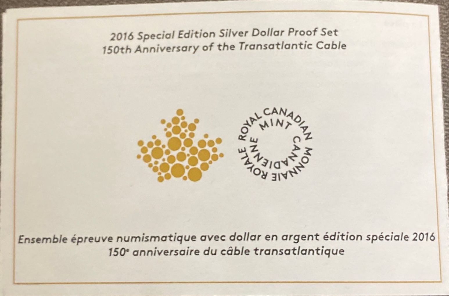 Lot 46 2016 Transatlantic Cable Proof Set With Fine Silver Dollar 23.17 Grams