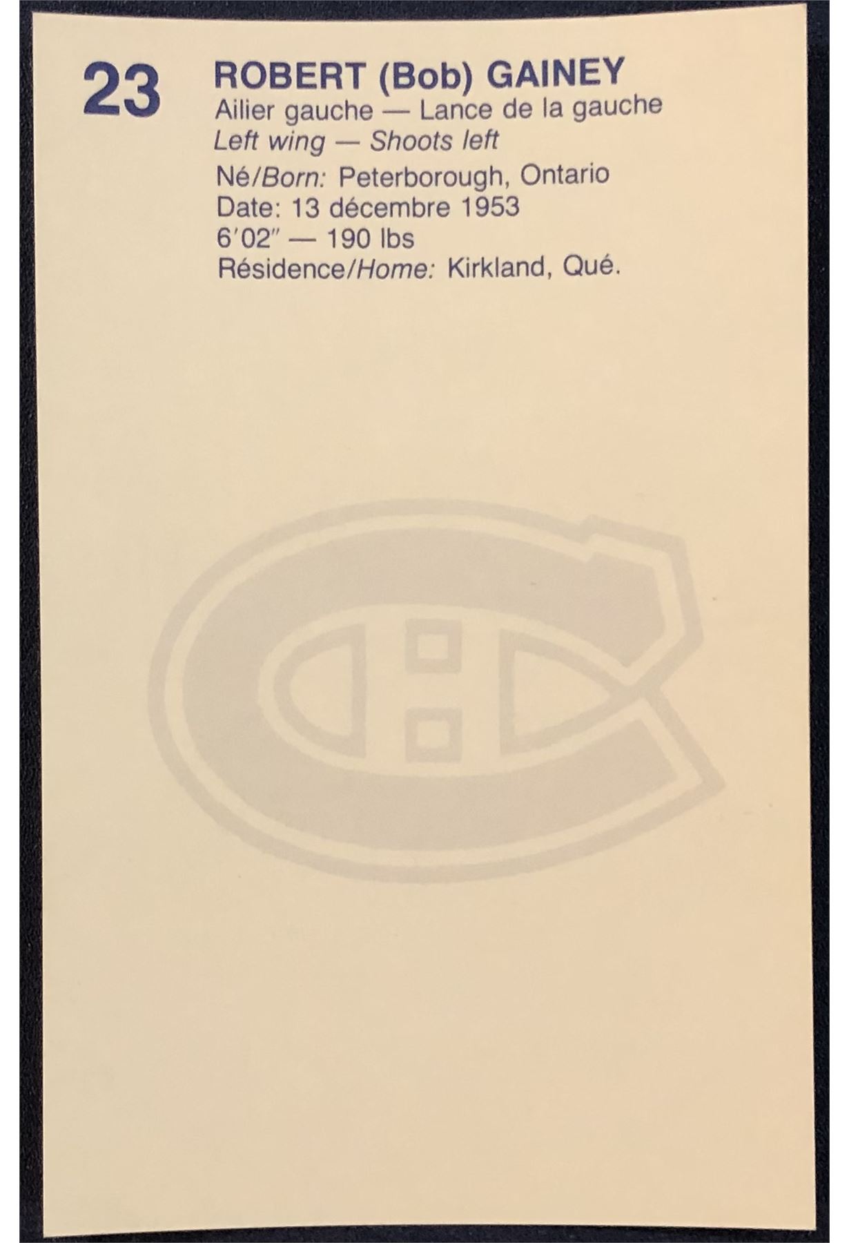 1981-82 MONTREAL CANADIENS POST CARDS - BOB GAINEY (HOF)