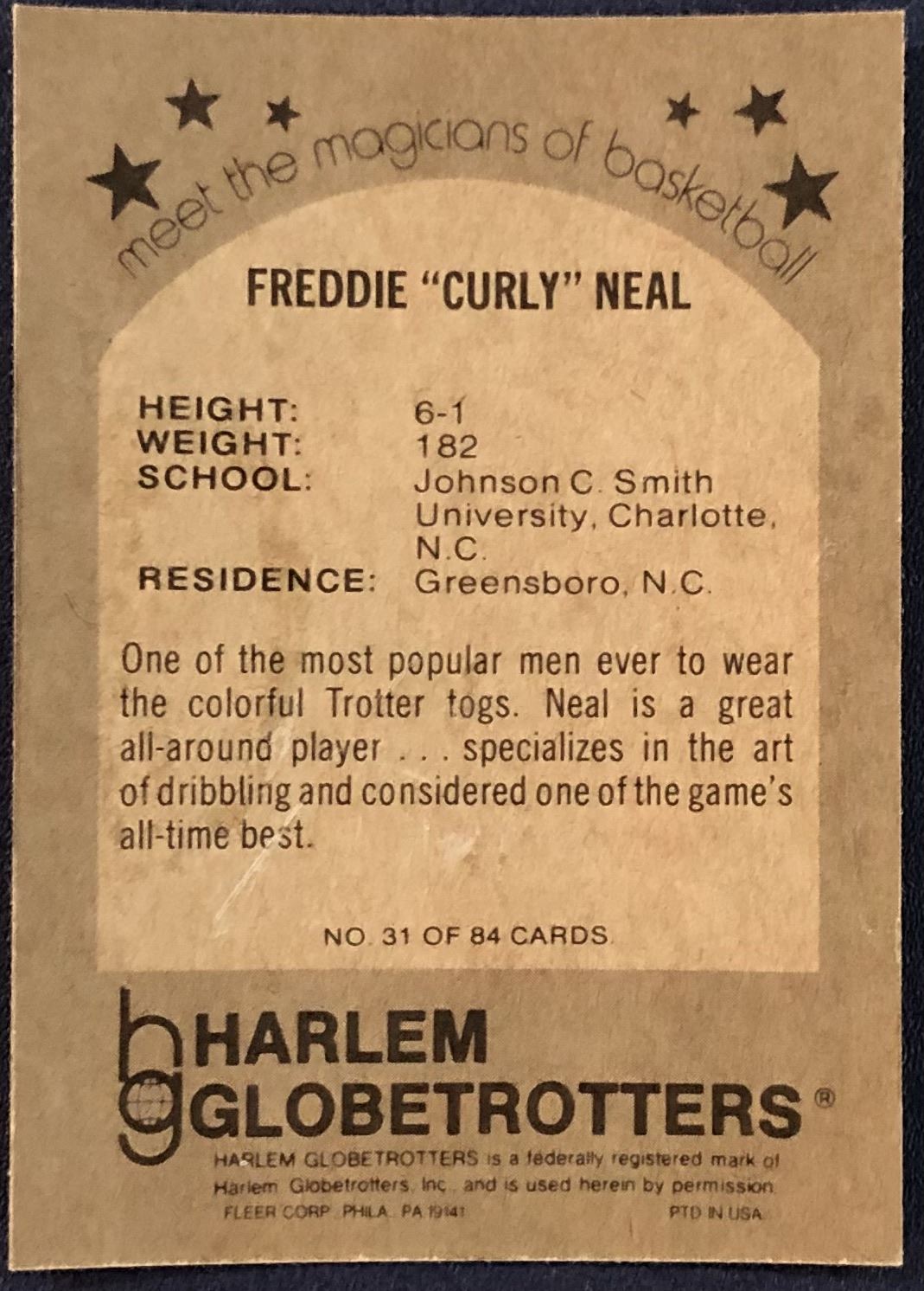 Lot 48 1971 FLEER HARLEM GLOBETROTTERS - CURLY NEAL