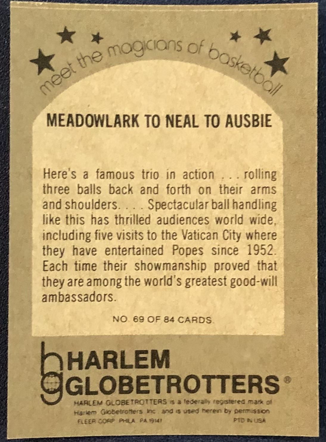 Lot 52 1971 FLEER HARLEM GLOBETROTTERS - MEADOWLARK LEMON