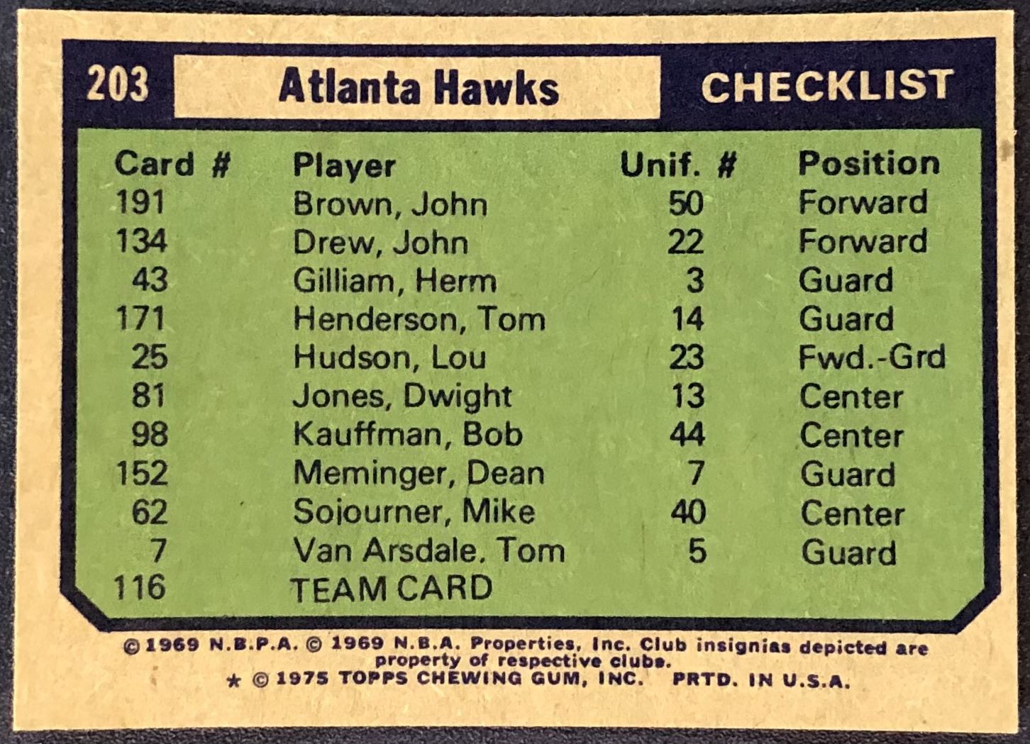 Lot 56 1975-76 TOPPS NBA ATLANTA HAWKS
