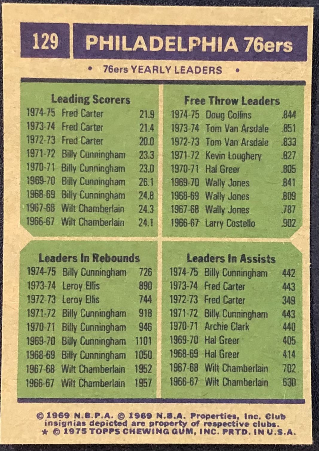 Lot 57 1975-76 TOPPS NBA BILLY CUNNINGHAM (HOF)