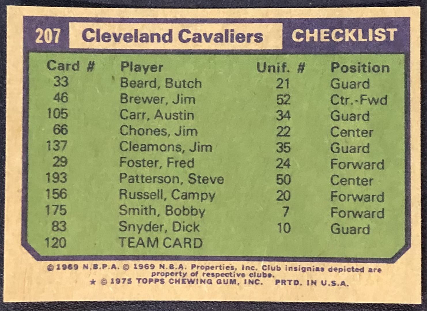 Lot 60 1975-76 TOPPS NBA CLEVELAND CAVALIERS