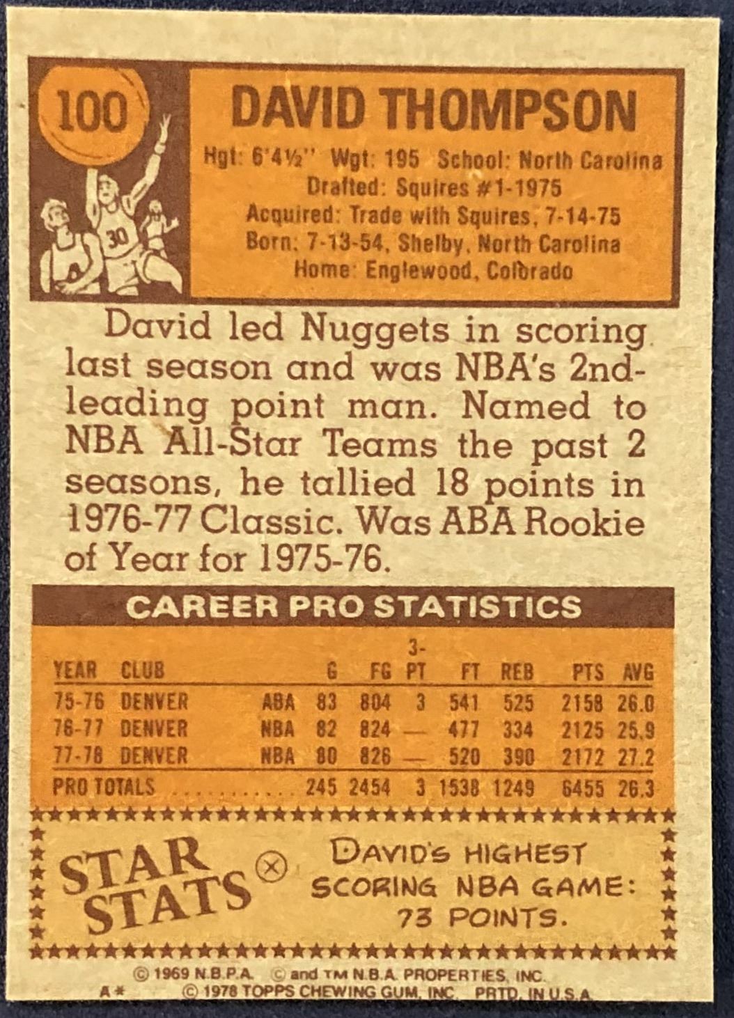 Lot 86 1978-79 TOPPS NBA DAVID THOMPSON (HOF)