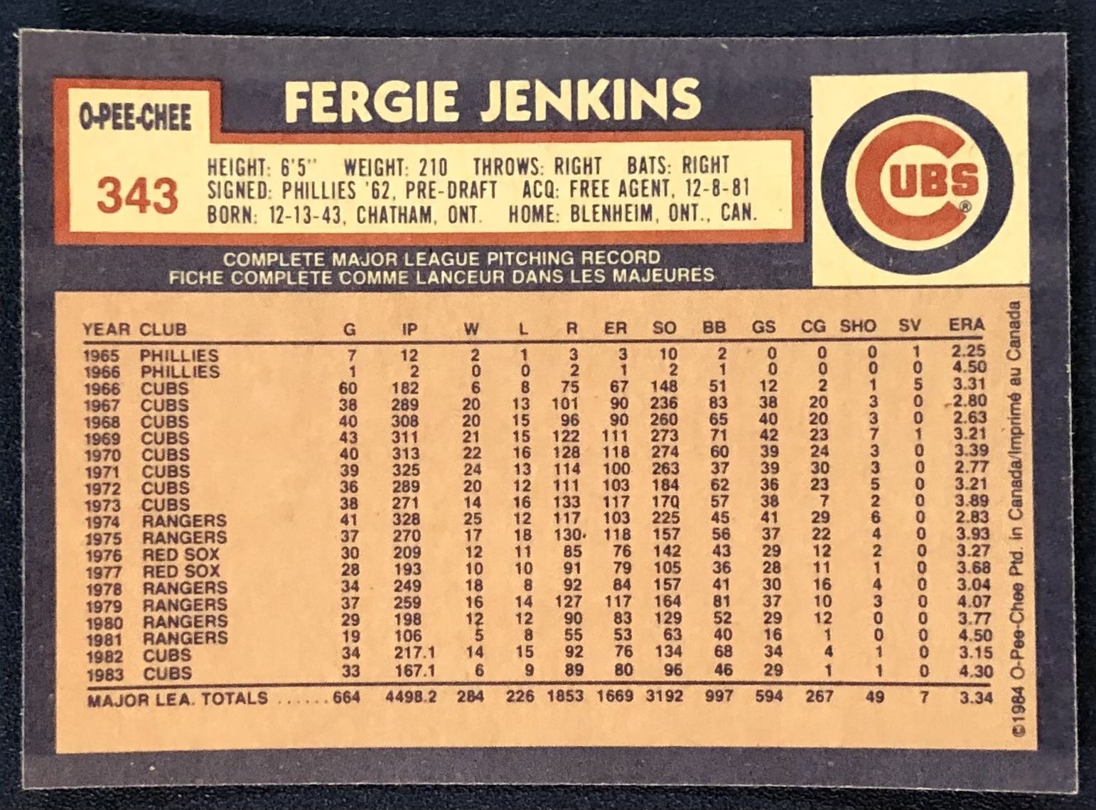 Lot 149 1984 O-PEE-CHEE FERGIE JENKINS (HOF)
