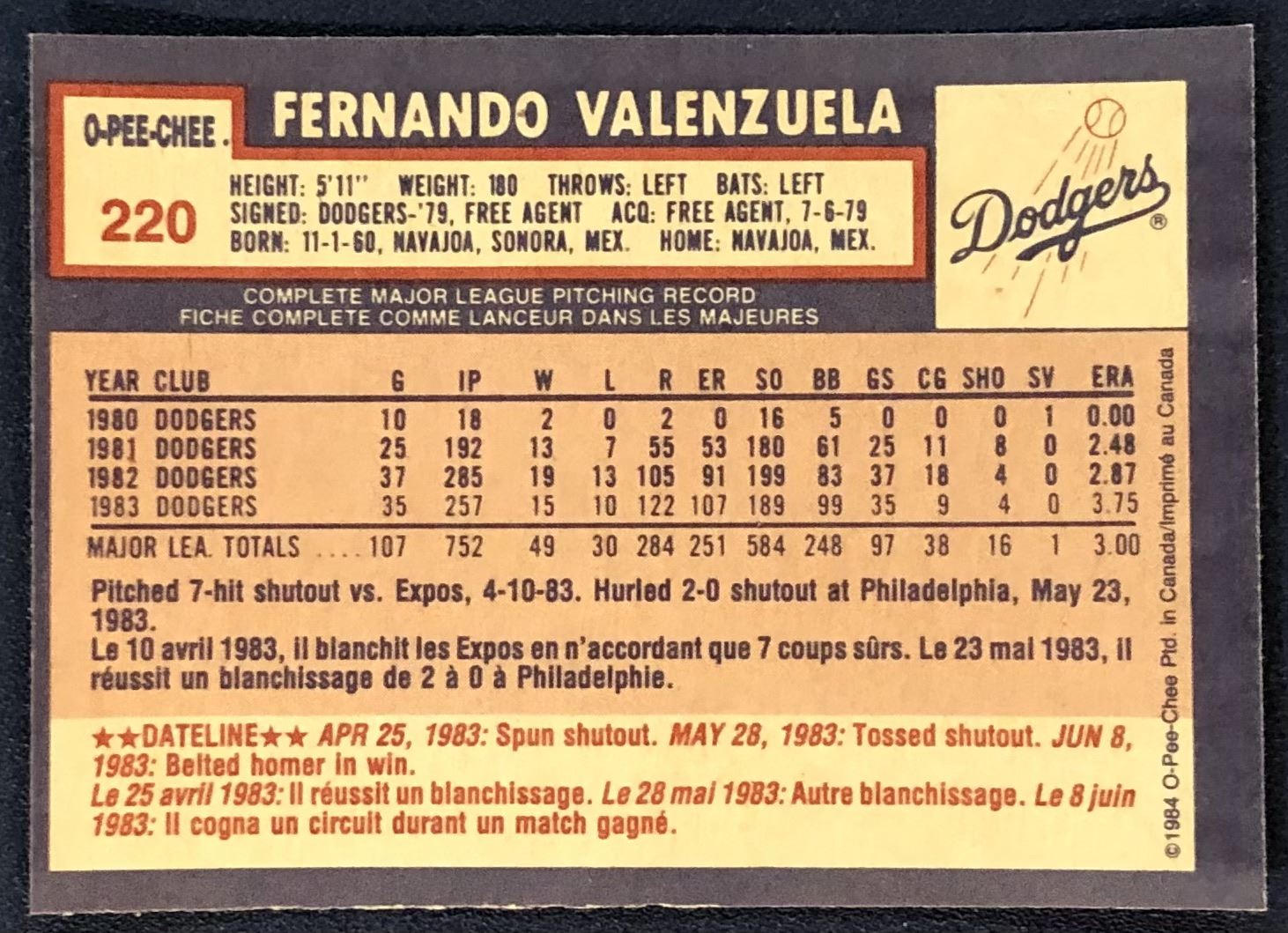 Lot 150 1984 O-PEE-CHEE FERNANDO VALENZUELA