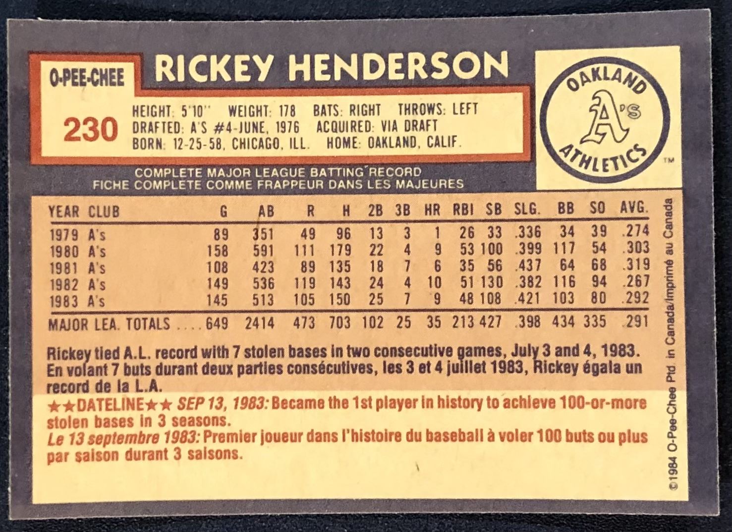 Lot 179 1984 O-PEE-CHEE RICKEY HENDERSON (HOF)
