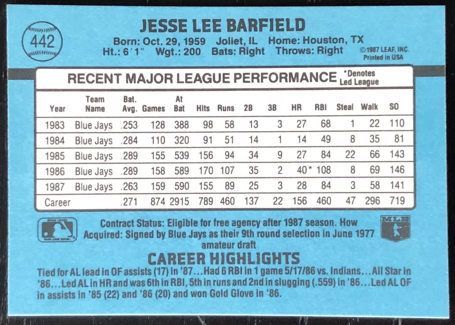 Lot 246 1988 DONRUSS JESSE BARFIELD