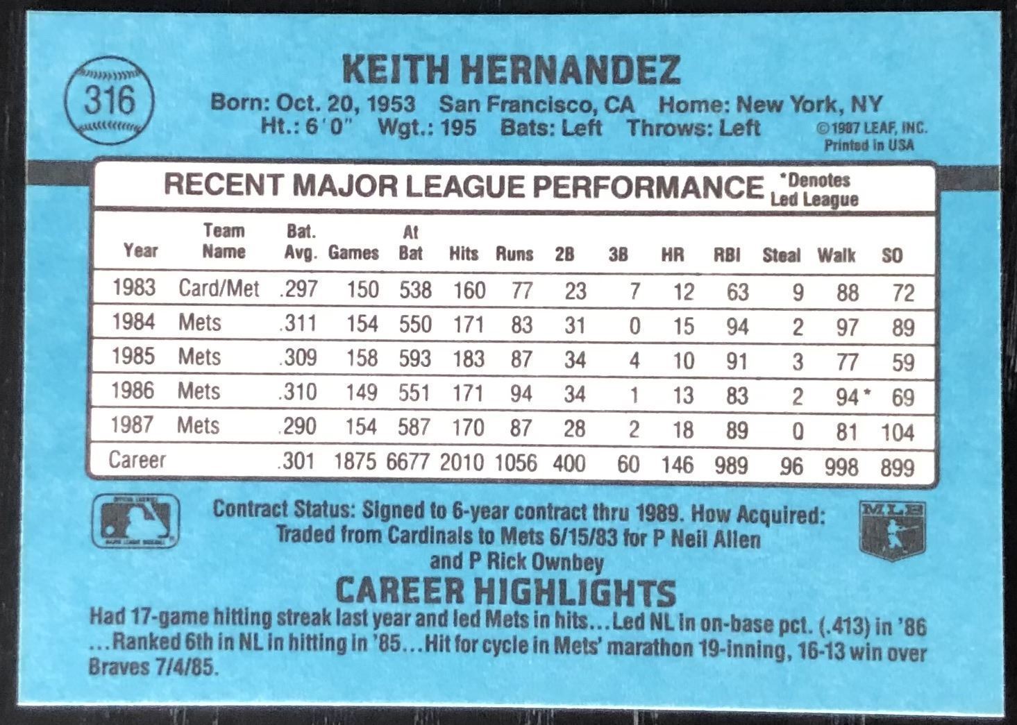 Lot 249 1988 DONRUSS KEITH HERNANDEZ