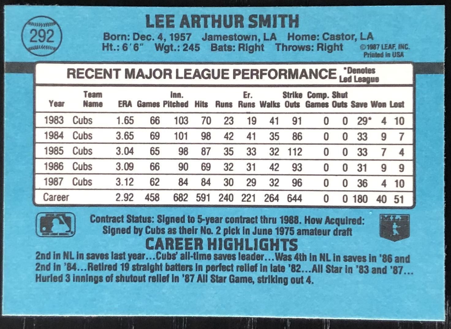 Lot 253 1988 DONRUSS LEE SMITH (HOF)