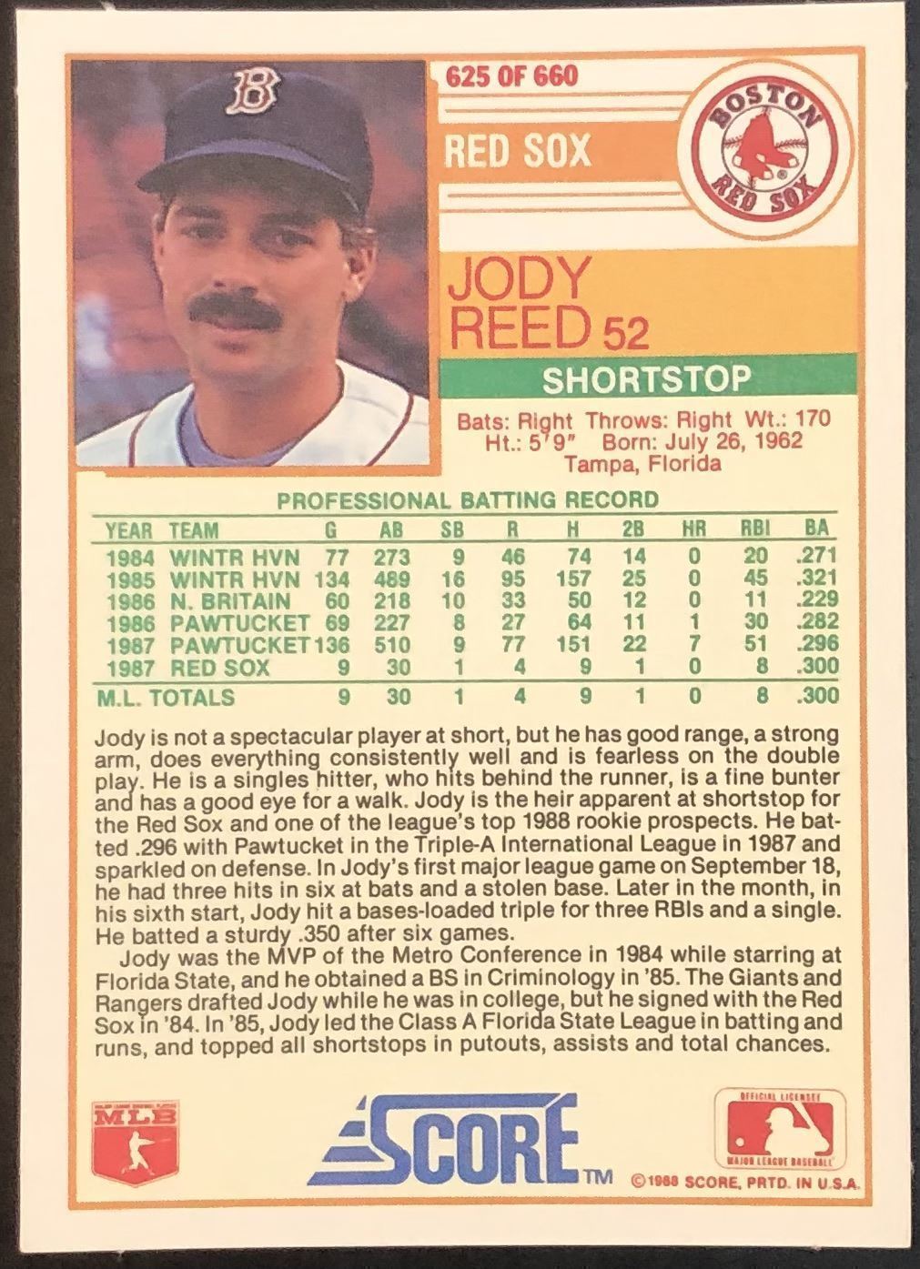 Lot 268 1988 SCORE JODY REED ROOKIE CARD