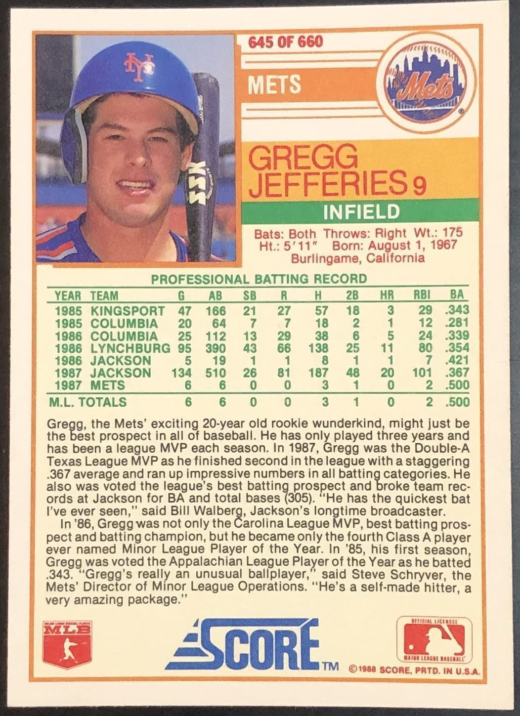 Lot 271 1988 SCORE GREGG JEFFERIES ROOKIE CARD