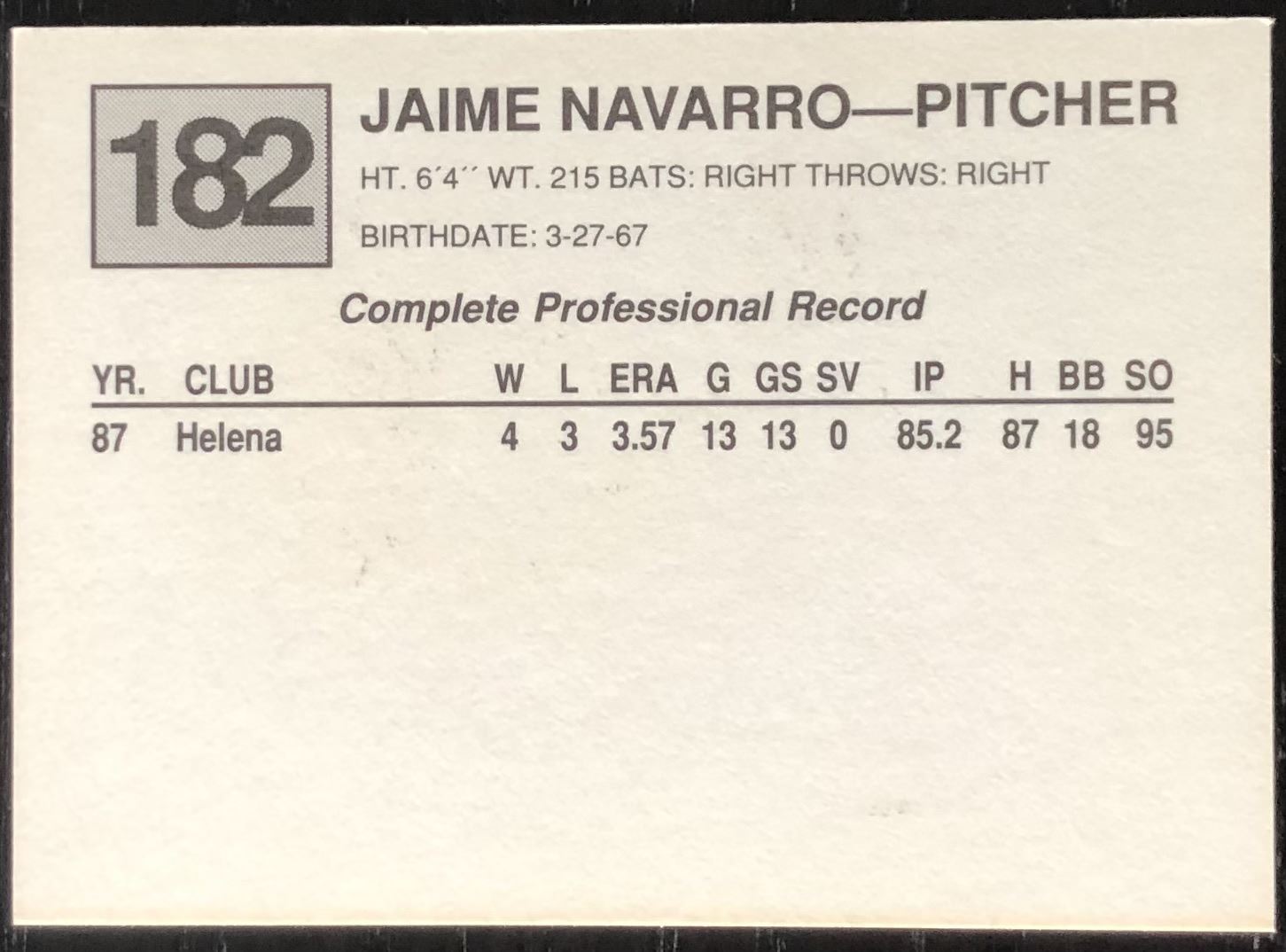 Card #182 MiLB, baseball, rookie, vintage