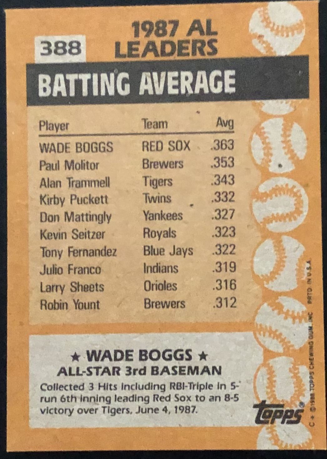 Lot 278 1988 TOPPS WADE BOGGS (HOF)