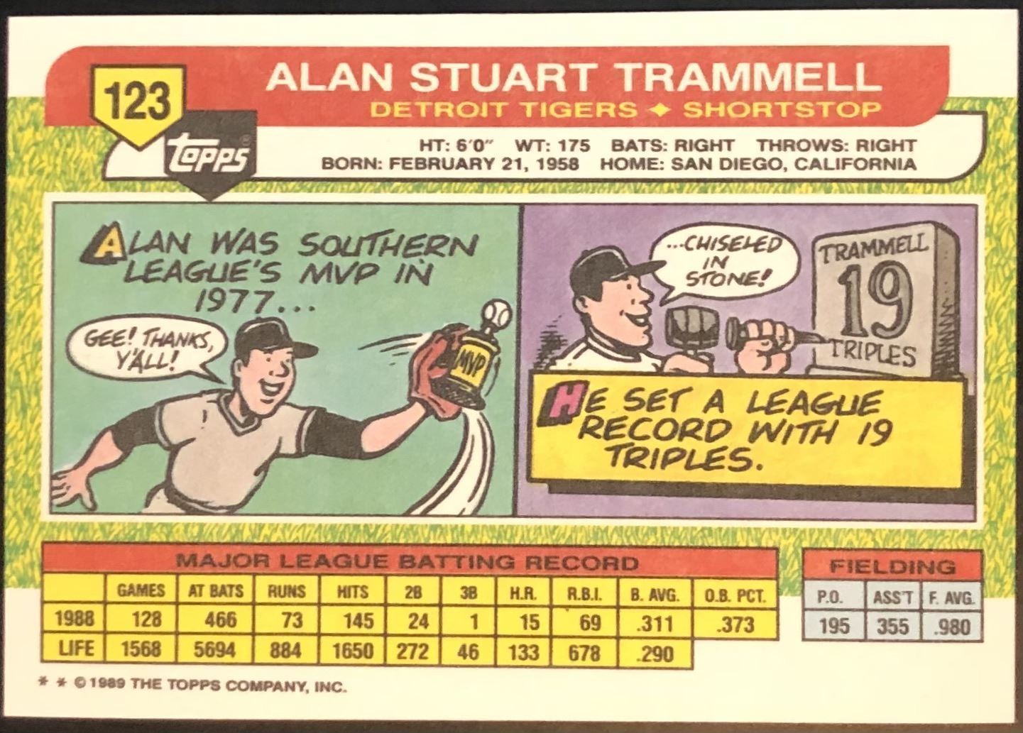 Lot 283 1989 TOPPS LARGE ALAN TRAMMELL (HOF)