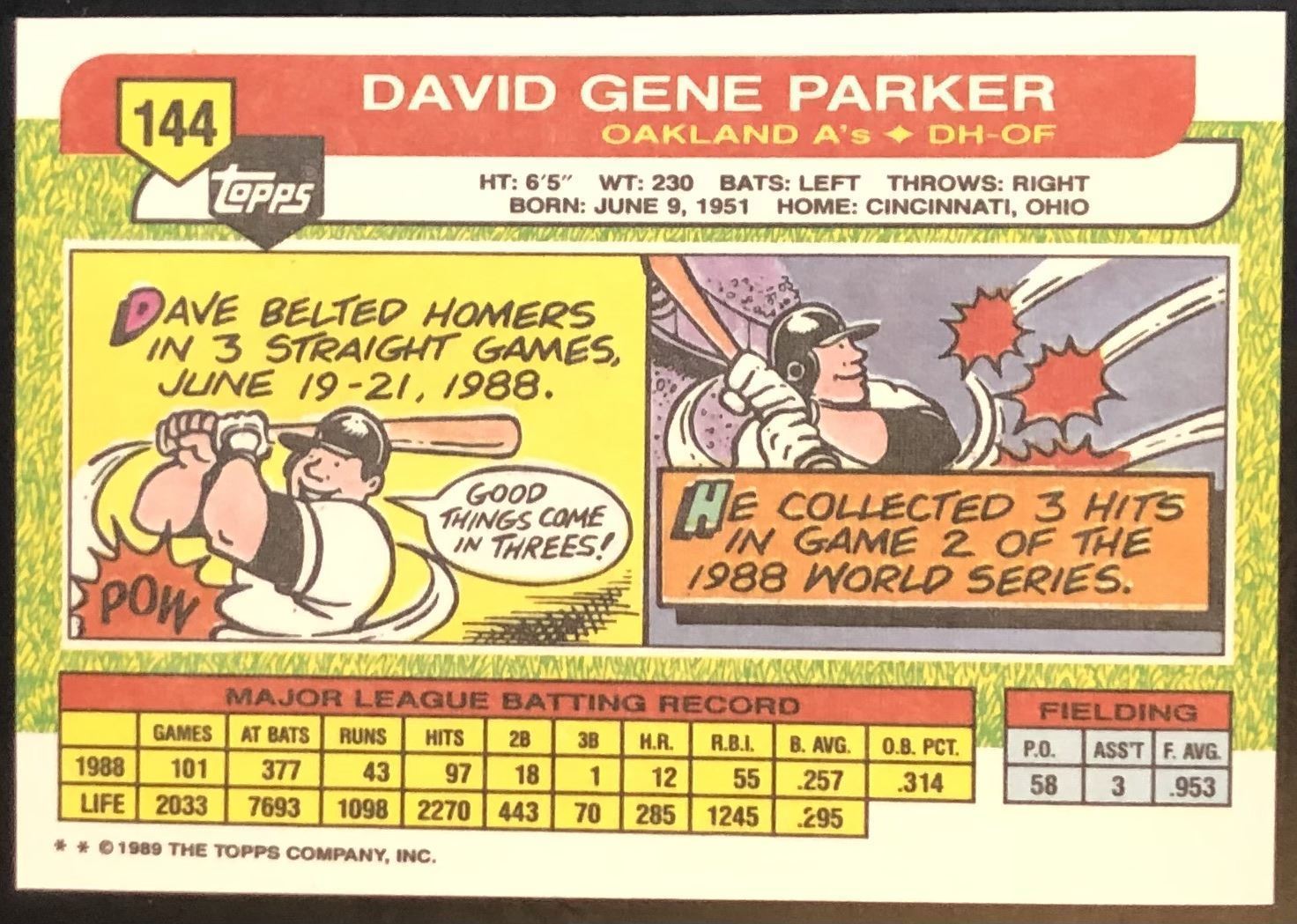 Lot 284 1989 TOPPS LARGE DAVE PARKER (HOF)