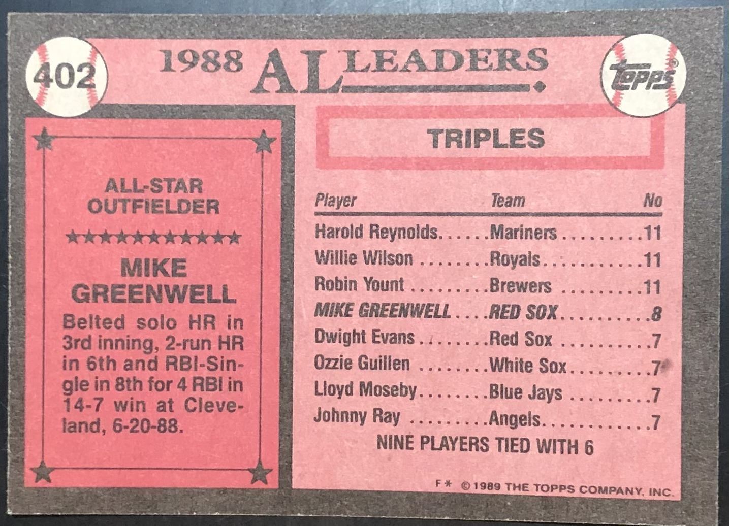Lot 285 1989 TOPPS MIKE GREENWELL