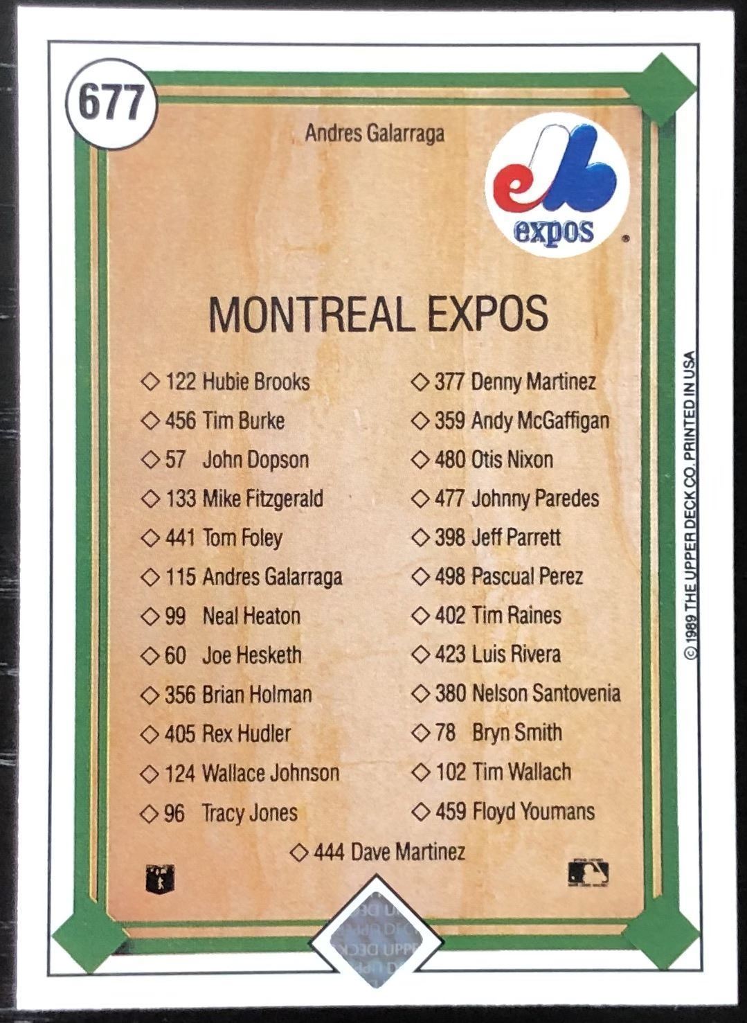 Lot 290 1989 UPPER DECK ANDRES GALARRAGA