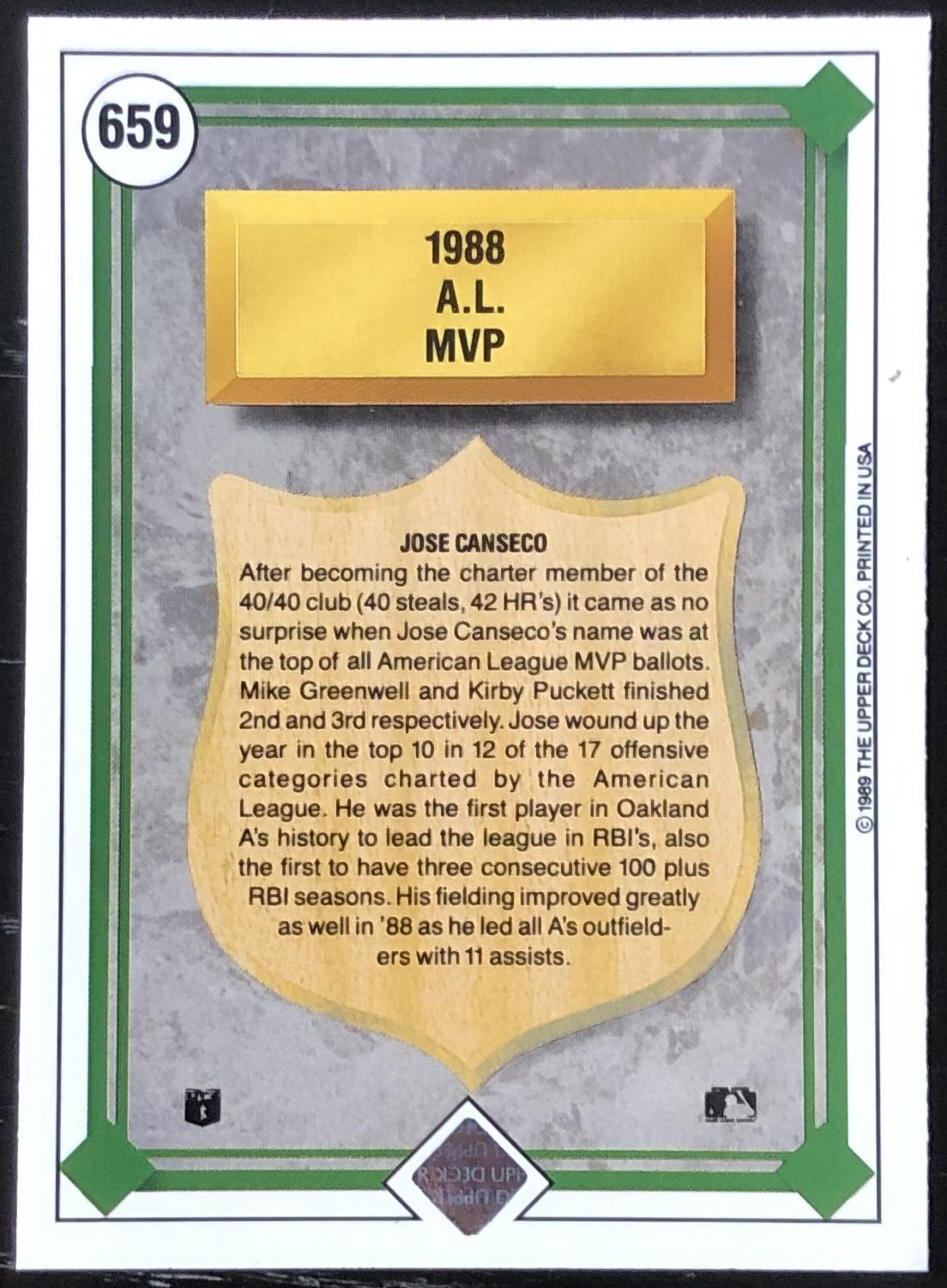 Lot 310 1989 UPPER DECK JOSE CANSECO