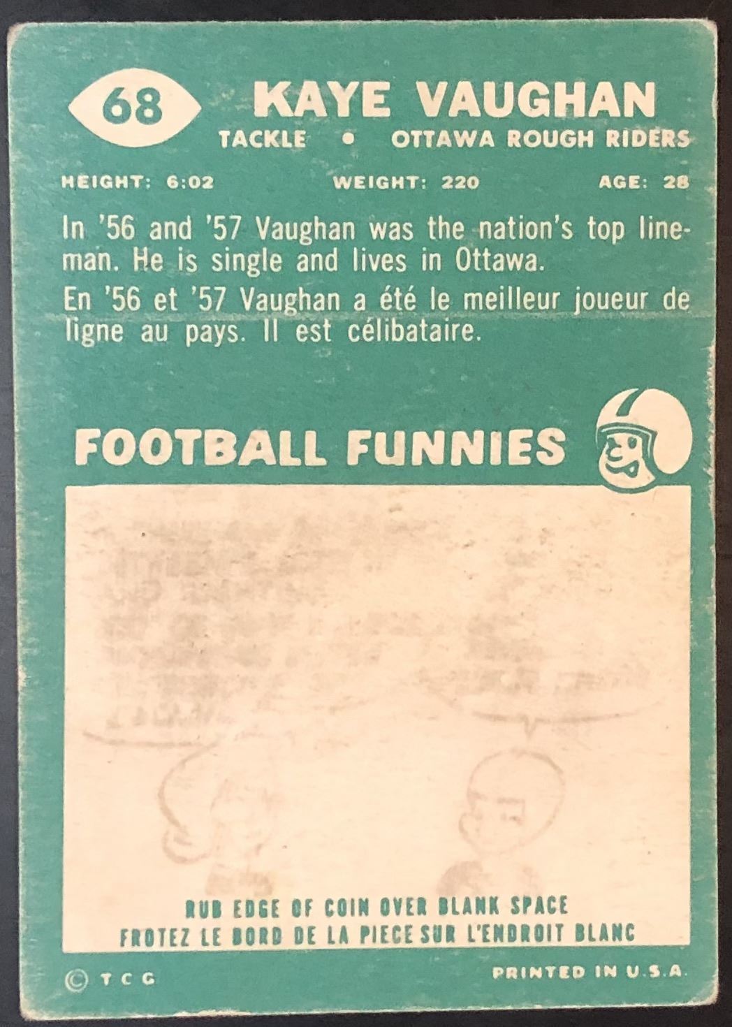 Lot 340 1960 TOPPS CFL KAYE VAUGHN (HOF)