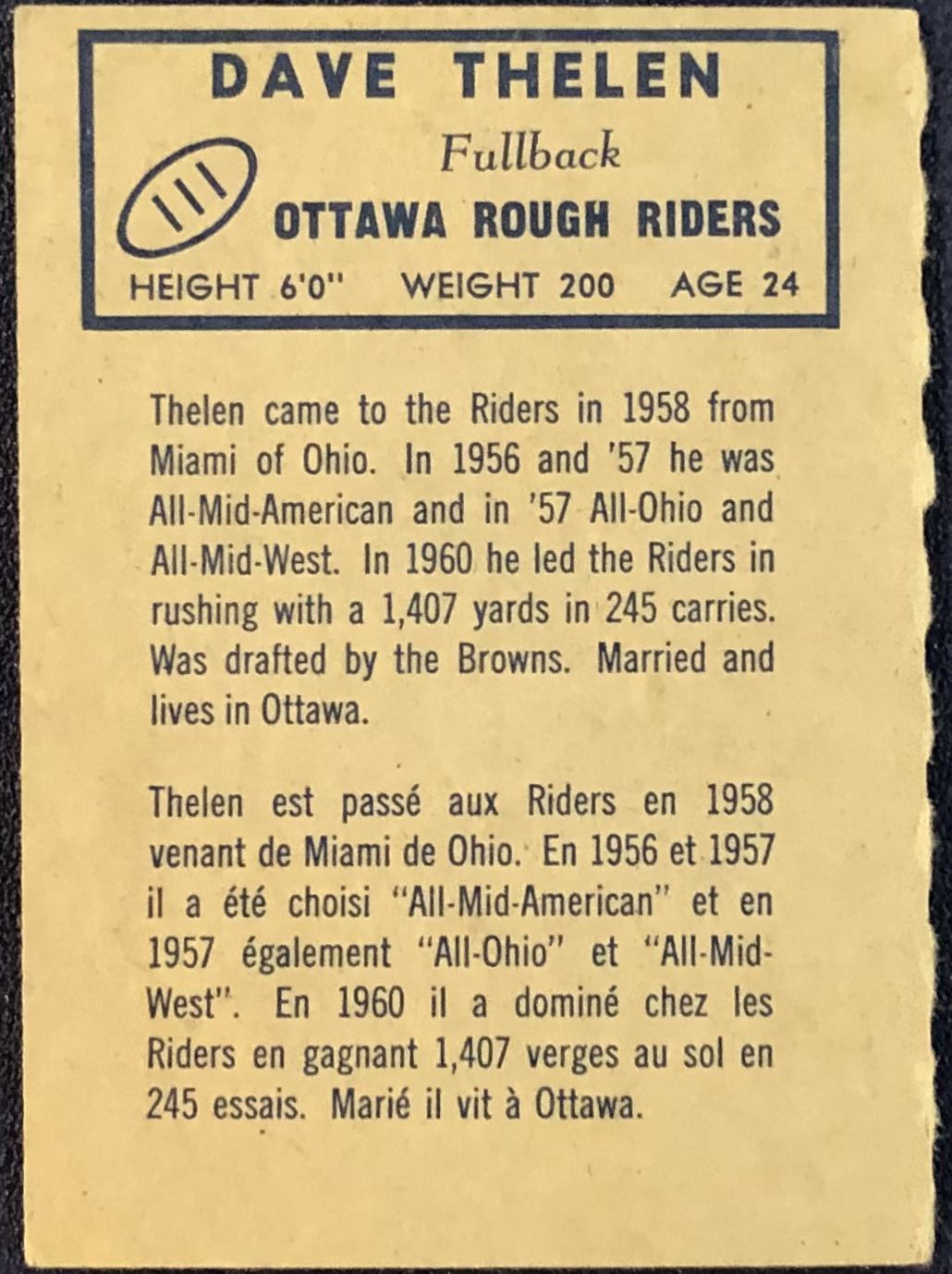 Lot 346 1962 O-PEE-CHEE CFL DAVE THELEN (HOF)